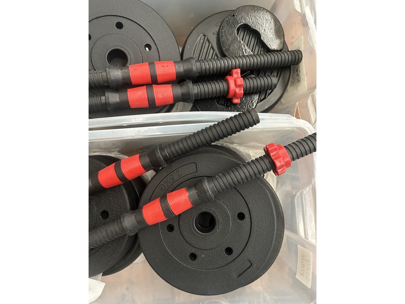 Product: Halterset met diverse halterschijven Specificaties: Nieuw en showroom modellen.