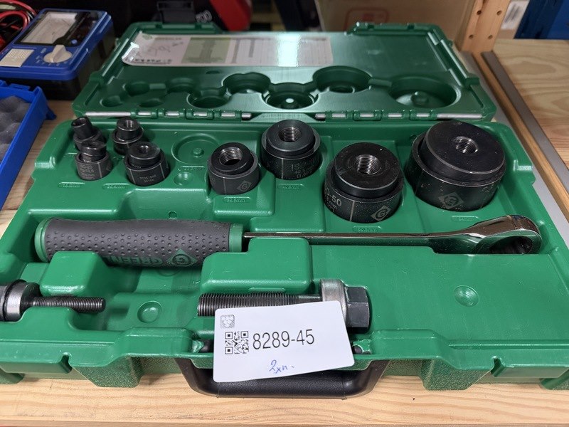 Merk: w.o. Greenlee Product: Divers bouwgereedschap w.o. slagmoersleutel Specificaties: Nieuw en demo modellen. Groene koffer 1 opzetstuk ontbreekt.