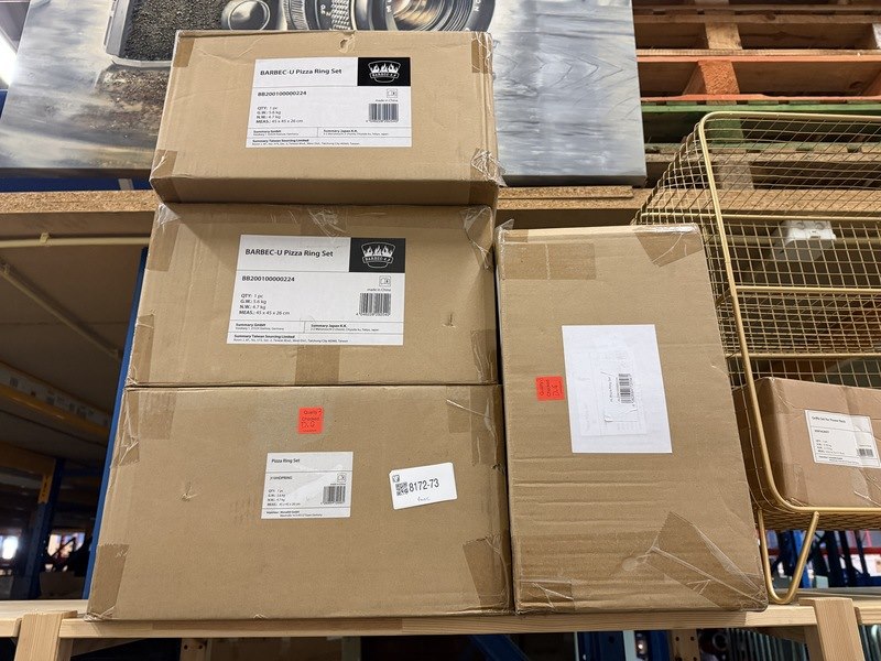 8x diverse (online) winkelvoorraad w.o. pizza ring set, papiervernietiger, w.o. zoomyo, barbecue-u