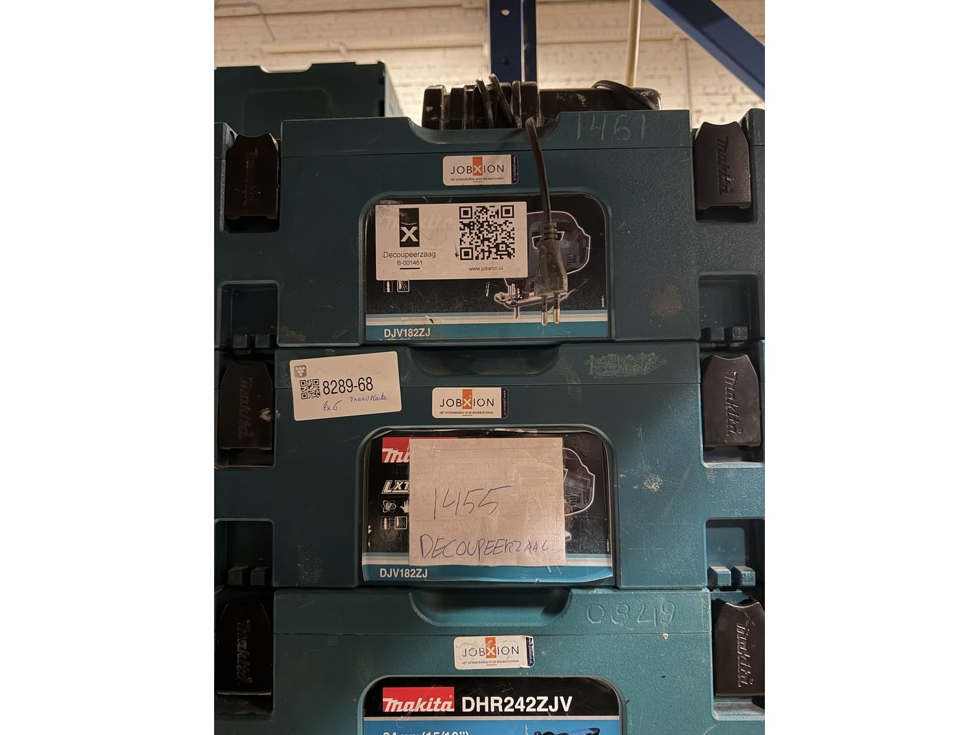 Merk: Makita Product: Bouwgereedschap in M-box met 1x accu, 1x lader Conditie: gebruikt Specificaties: In totaal 1x accu, 1x lader. DHS630ZJ cirkelzaag DHR242ZJV combihamer 2x DJV182ZJ decoupeerzaag