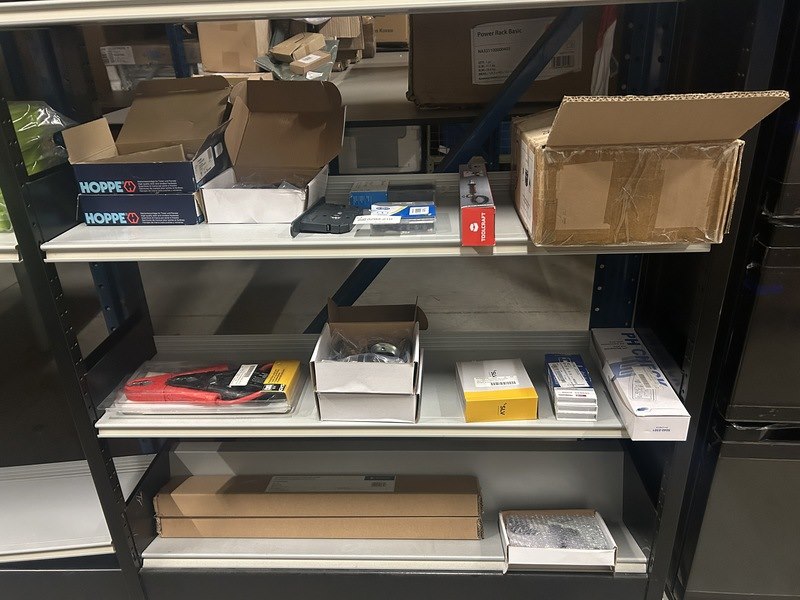 Merk: w.o. Hoppe, SLV, Toolcraft, Levivo Product: Inhoud stellingvak w.o. deurbeslag en elektronica Specificaties: Nieuw en demo modellen.