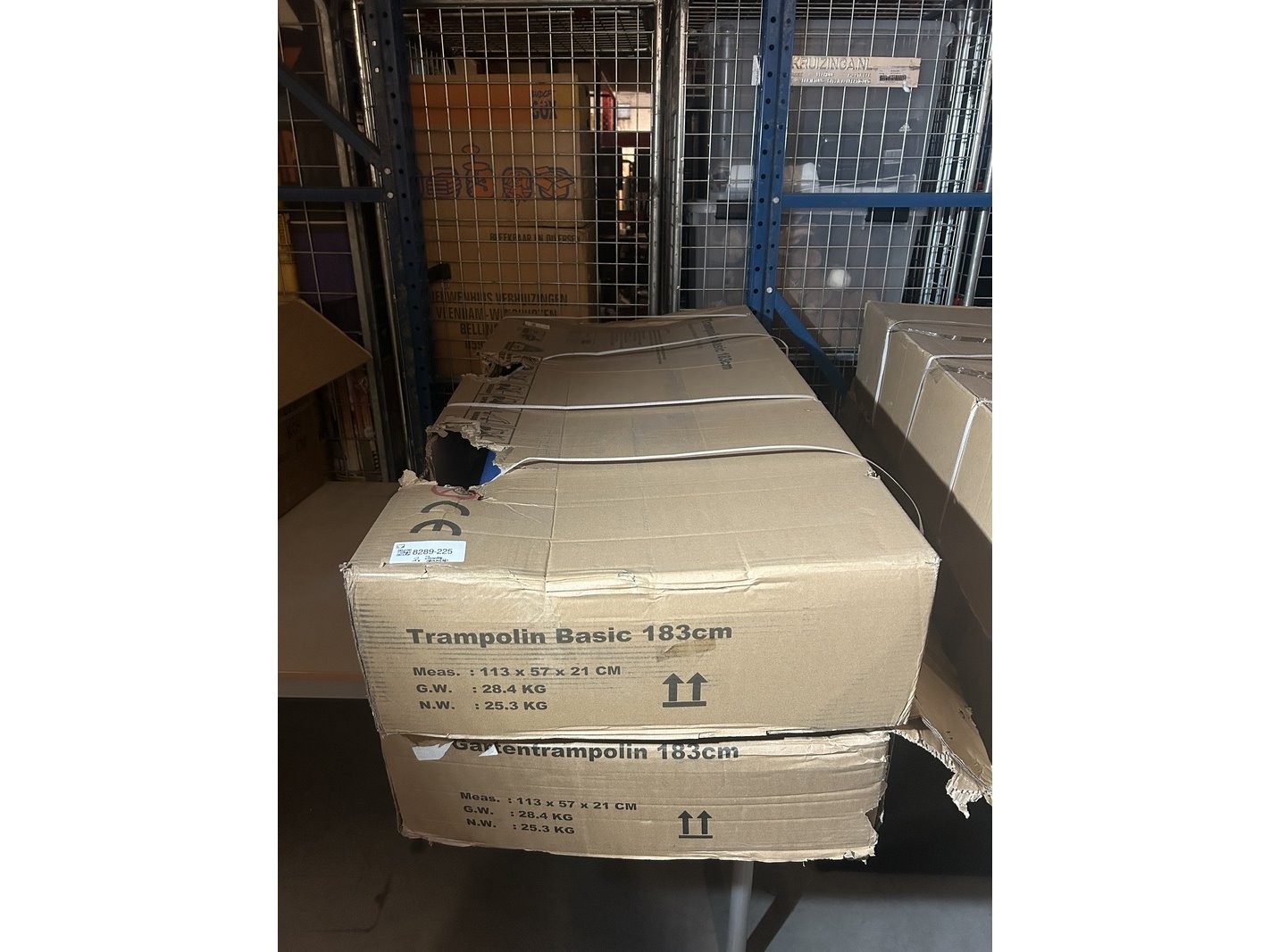 Product: Trampoline 183 cm Specificaties: Nieuw en showroom modellen. Verpakking beschadigd.