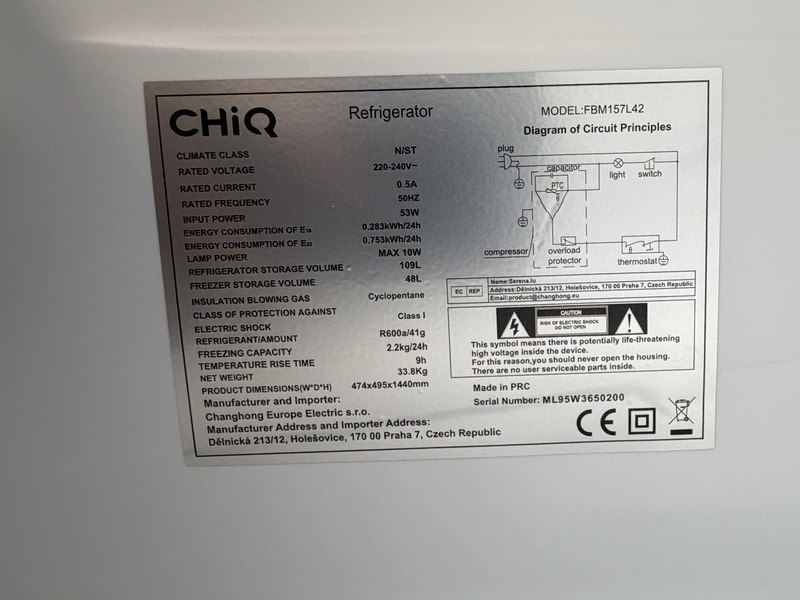 Merk: CHiQ Product: Koel-vriescombinatie 157 liter Afmeting: 474x495x1440 mm Specificaties: Demo model. 157 Liter.