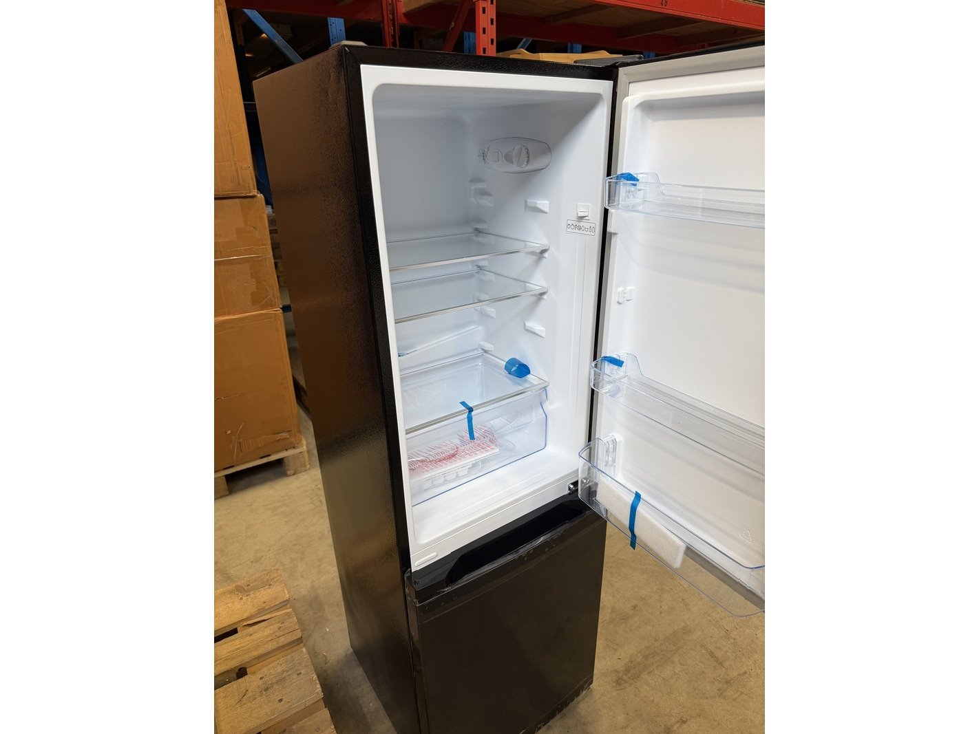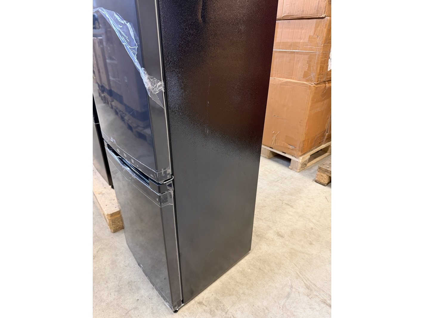Merk: CHiQ Product: Koel-vriescombinatie 157 liter Afmeting: 474x495x1440 mm Conditie: nieuw Specificaties: Beschadigd door transport. Zijkant.