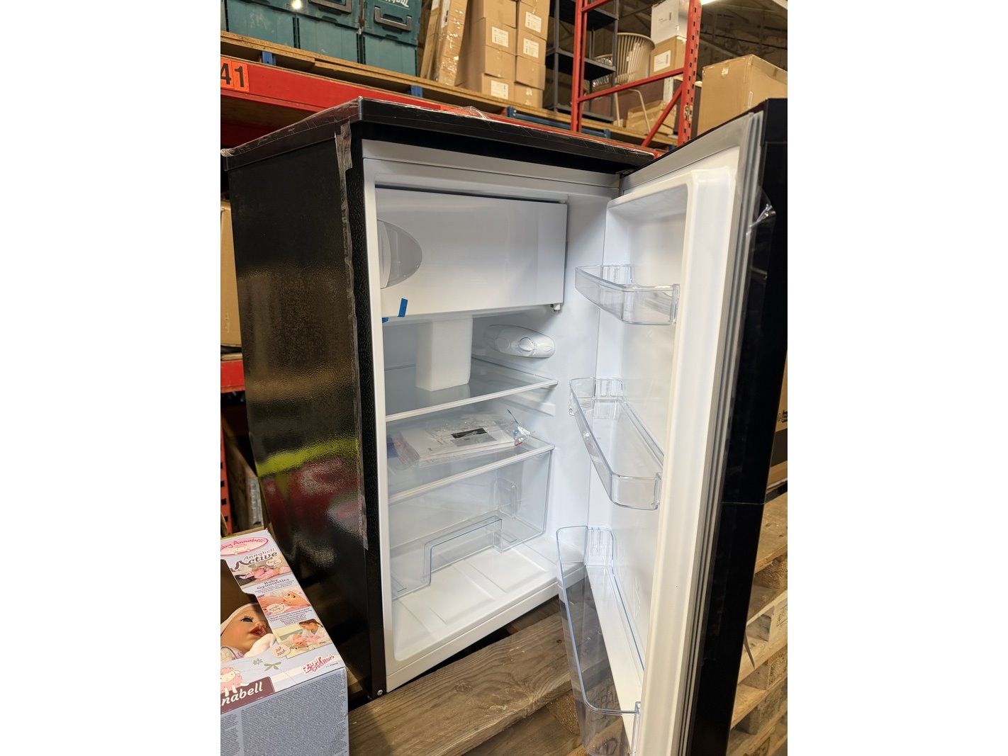 Merk: CHiQ Product: Koel-vriescombinatie 107 liter Afmeting: 550x850x560 mm Conditie: nieuw Specificaties: Beschadigd door transport. Achterkant.