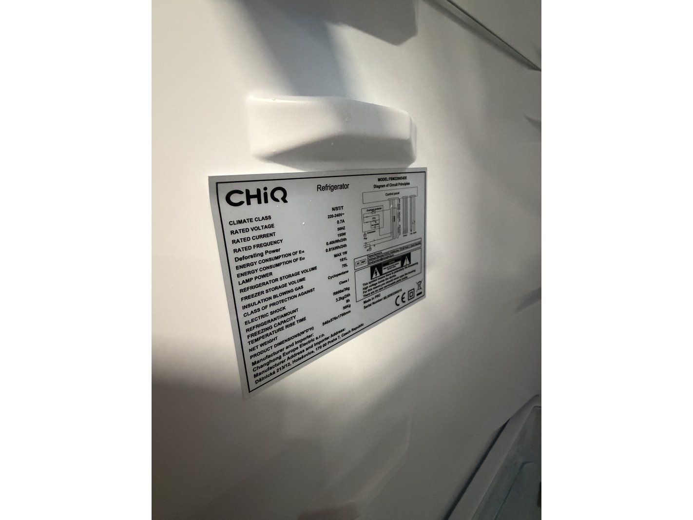 Merk: CHiQ Product: Koel-vriescombinatie 231 liter Afmeting: 545x576x1700 mm Conditie: nieuw