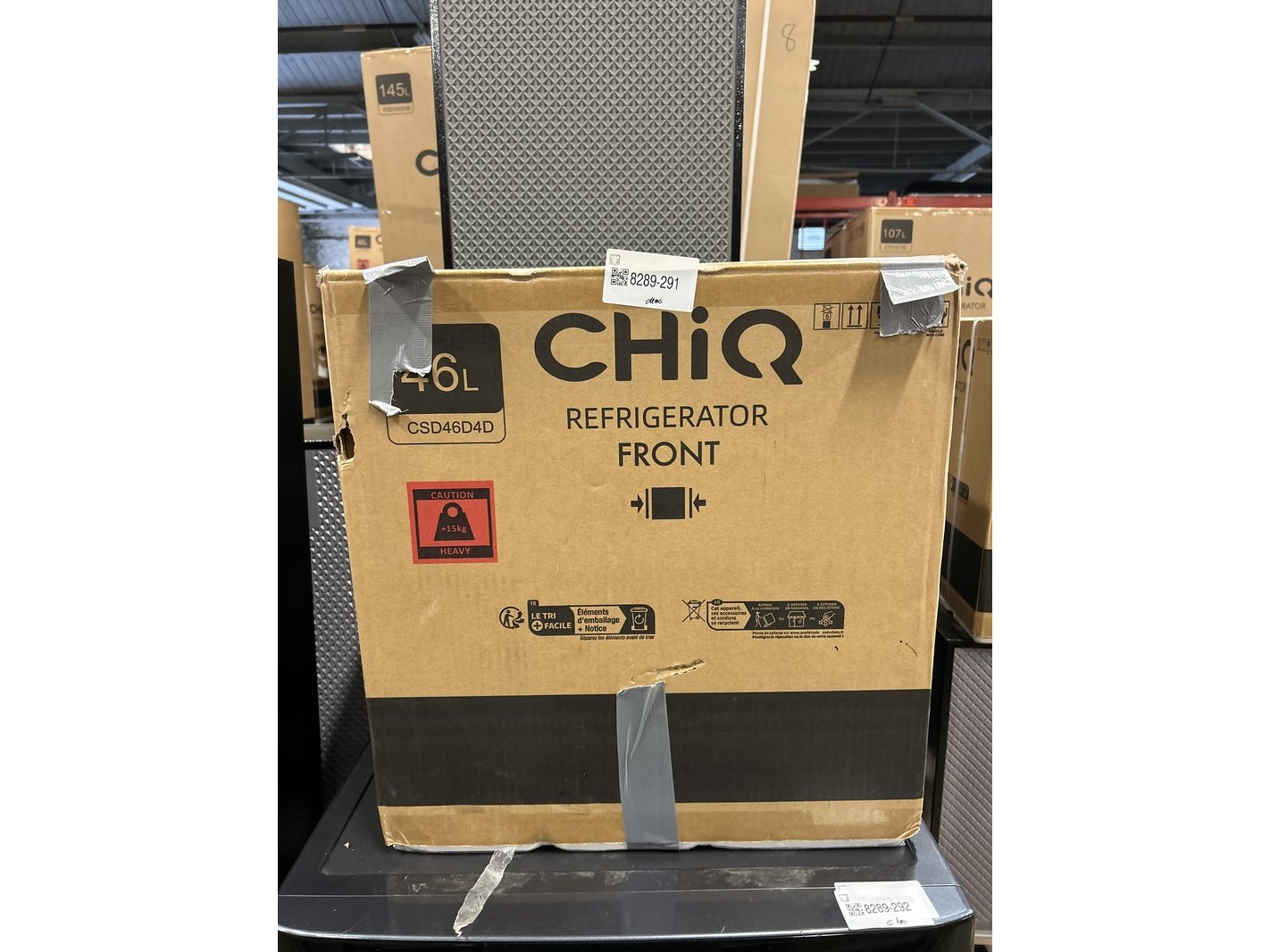 Merk: CHiQ Product: Minibar 46 liter Afmeting: 470x447x496 mm Specificaties: Demo model. Verpakking beschadigd.