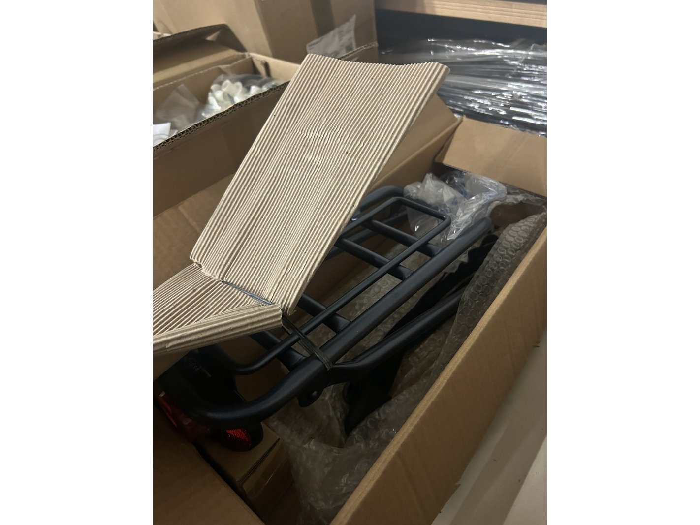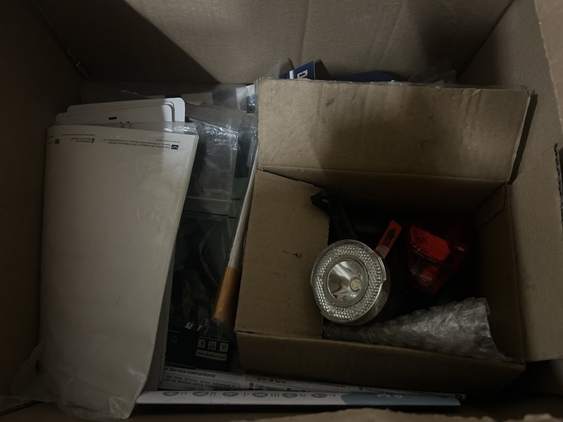 Partij fiets artikelen en onderdelen w.o. bagagedrager, fietsverlichting