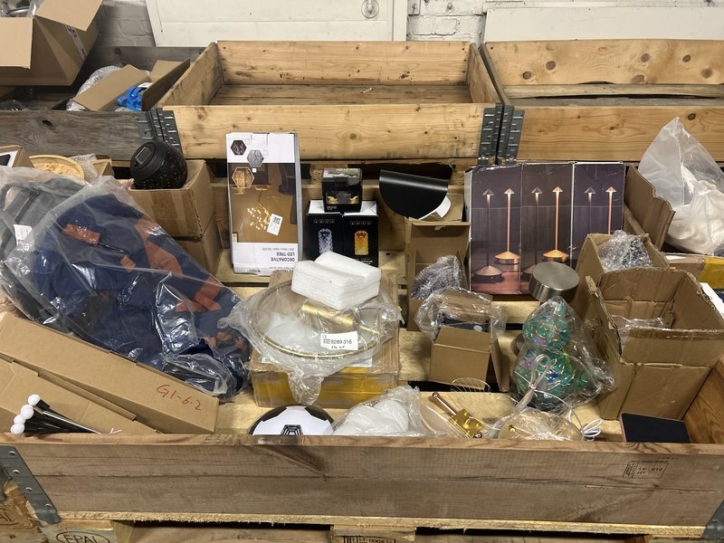 Product: Partij (online) winkelvoorraad w.o. woondecoratie ca. 23x Specificaties: Nieuw, showroom modellen en demo modellen.