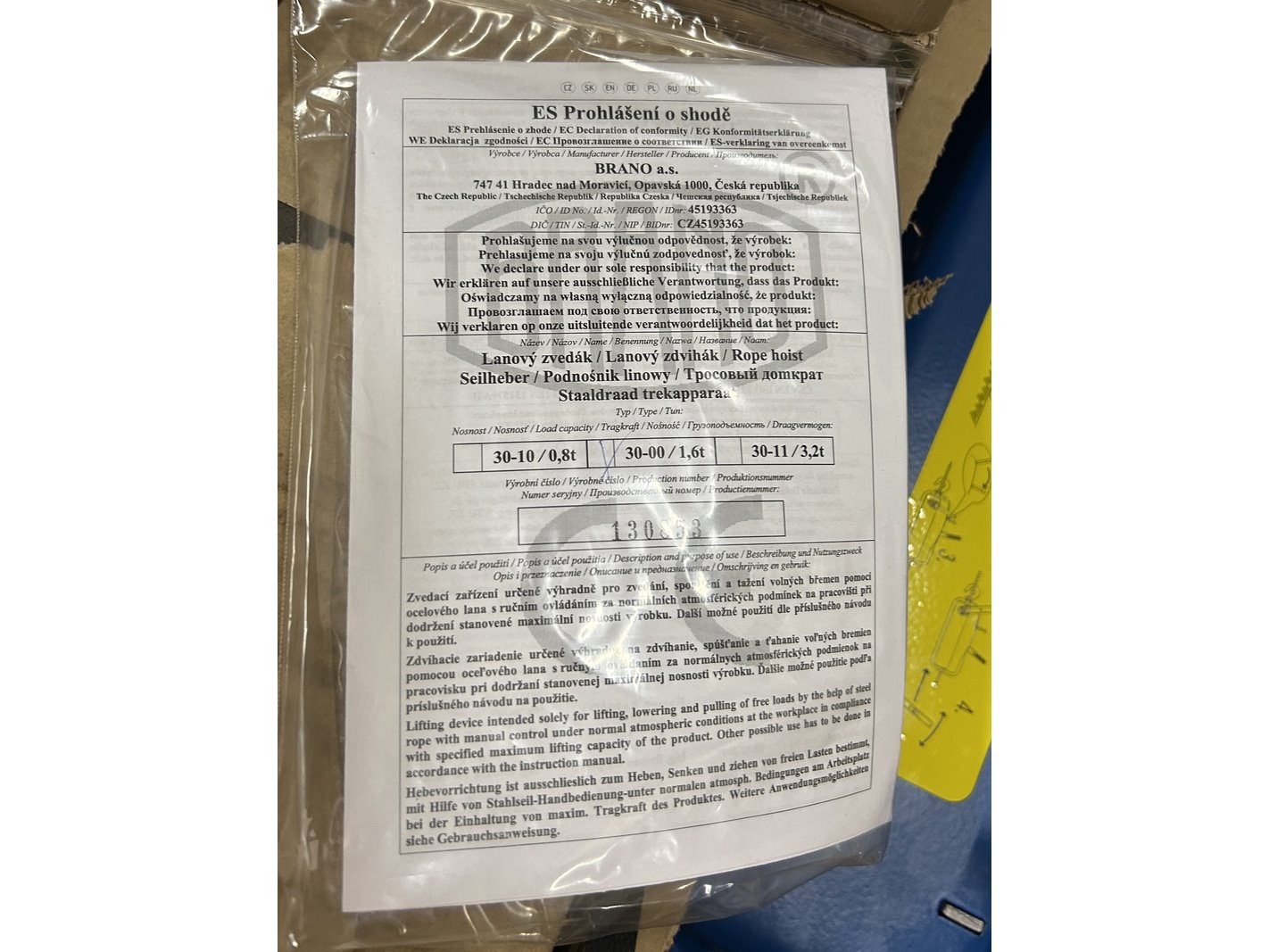 Hijskabel met haspel 30,00/1,6t - 20m brano