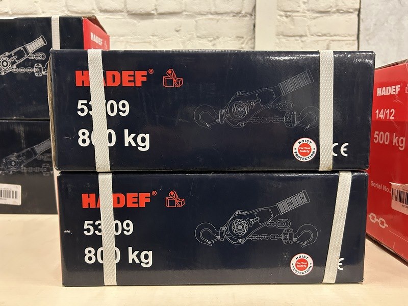 Merk: HADEF Professional Product: 53/09 800kg 1.5m rateltakel met certificaat Conditie: nieuw
