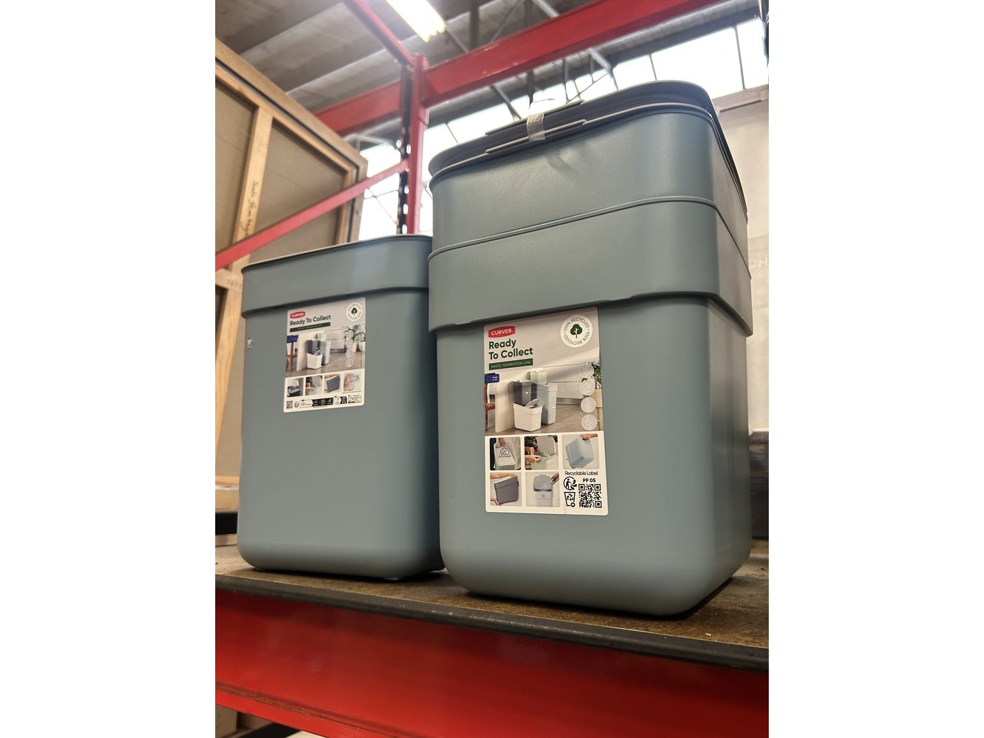 Merk: Curver Product: Curver afvalbakken, opbergers en wasmanden Specificaties: Nieuw en showroom modellen.