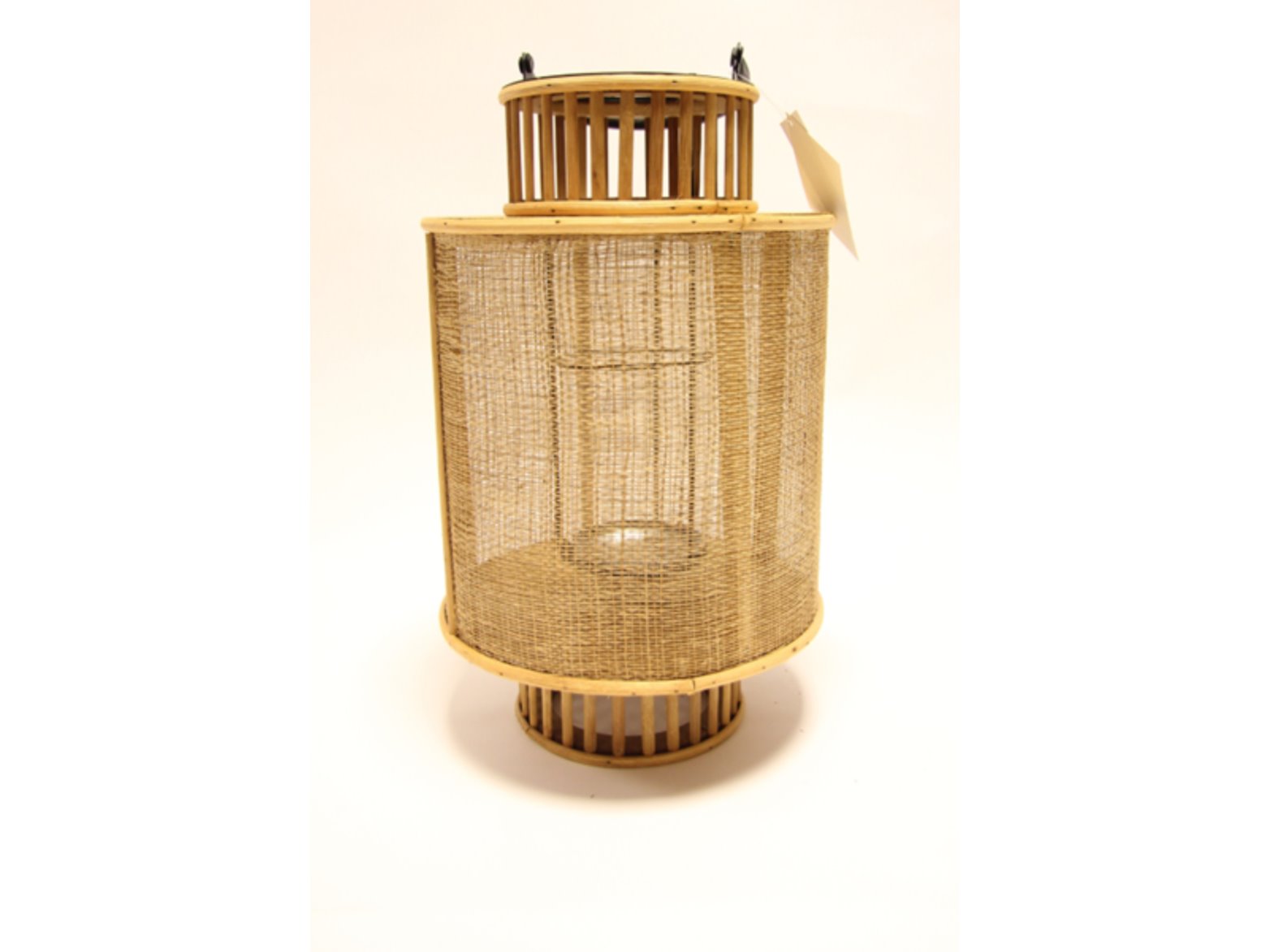 Product: Design lantaarn waxine van jute en hout 24x39 cm Conditie: nieuw