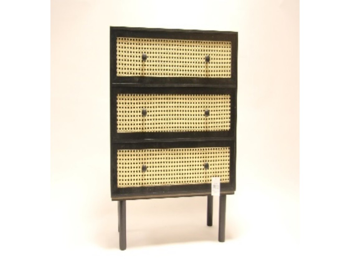 Product: Ladekast zwart met kunststof webbing lade-fronten Afmeting: B60xD26xH70 Conditie: nieuw