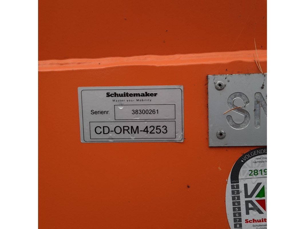 Merk: Schuitemaker Product: Zoutstrooier op aanhanger Kleur: CD-ORM-4253 Materiaal: 38300261 BouwJaar: 2011 Conditie: gebruikt Specificaties: Kenteken: LDV-83-Z Geïmporteerd Eerste toelating nationaal: 13-07-2021 APK vervaldatum: N.v.t. VIN nummer: 38300261 Inhoud 3,5 m3 Leeggewicht ca. 1370 Kg. Maximale toegestane massa ca. 12000 Kg. Inclusief bedieningskast.