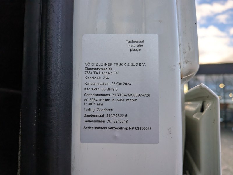 Merk: DAF Product: Vrachtwagen BouwJaar: 2012 Conditie: Gebruikt Specificaties: Basis kenmerken Kenteken: 88-BHG-5 Chassisnummer: XLRTE47MS0E974726 Datum eerste toelating: 21 december 2012 Vervaldatum APK: 3 december 2025 Afgelezen tellerstand: Niet afleesbaar Brandstof: Diesel Carrosserie: Opleggertrekker Aantal zitplaatsen: 4 Aantal sleutels: 1 Motor & Milieu Motorcode: MX340U1 Aantal cilinders: 6 Cilinderinhoud: 12.902 cm³ Max. vermogen: 340 kW / 462 PK Transmissie: Automatisch Emissiecode: Euro 5 Maten & Gewichten Voertuig lengte: 6.160 mm Voertuig breedte: 2.550 mm Wielbasis: 3.800 mm Massa rijklaar: 7.701 kg Max. massa voertuig: 19.000 kg (toegestane max. massa) , 20.500 kg (technische max. massa) Laadvermogen: 11.399 kg Max. massa samenstel: 50.000 kg Oplegger geremd: 42.299 kg