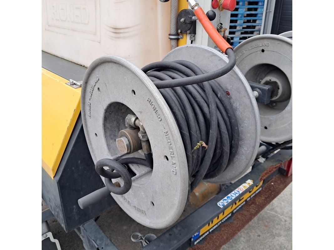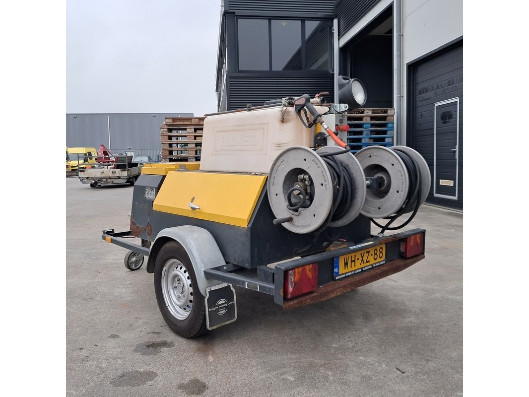 Merk: Rioned Product: Aanhangwagen rioolspuit BouwJaar: 2003 Conditie: Gebruikt Specificaties: Basiskenmerken Kenteken: WH-XZ-88 Identificatienummer: XL9HP520003009009 Datum eerste toelating: 30 juni 2003 Afgelezen tellerstand: 615 u. Technische gegevens Pomp type: P-30 SP-6115 Max. opbrengst: 40 l Max. werkdruk: 140 bar Maten & Gewichten Voertuig breedte: 1.600 mm Massa rijklaar: 520 kg Max. massa voertuig: 1.000 kg Laadvermogen: 480 kg