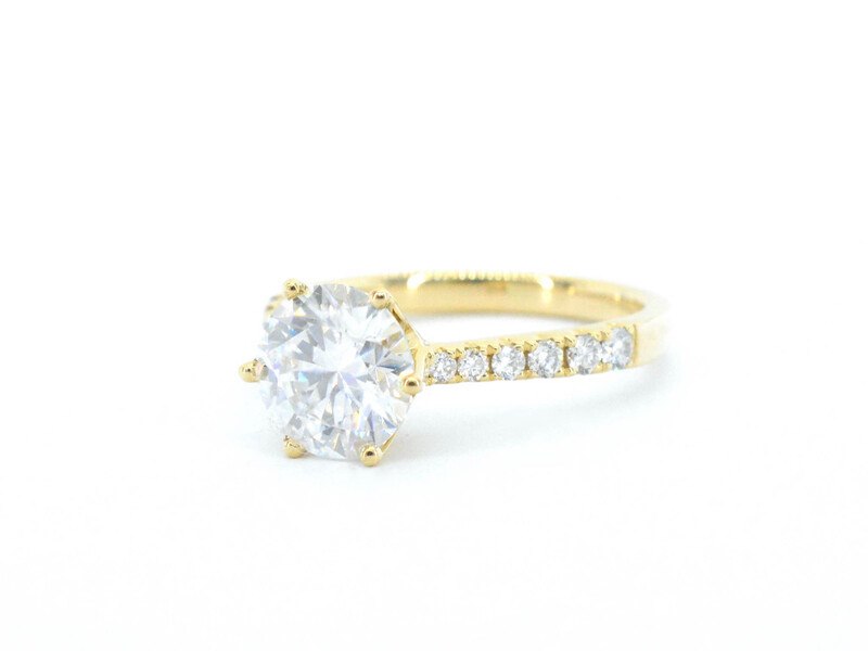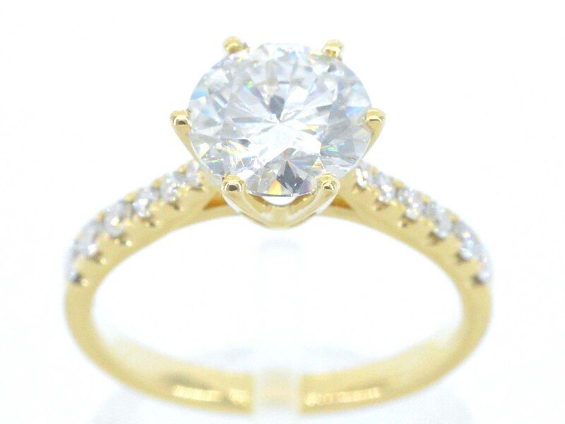 Product: Gouden ring met een briljant geslepen diamant van 3.00 carat Specificaties: Diamant: Natuurlijk Aantal: 1 stuk Slijpvorm: Briljant geslepen Gewicht (carat): 3.00 carat Kleur: F-G Zuiverheid: SI Diamant (secundair): Kleine diamanten Aantal diamanten: 12 stuks Slijpvorm: Briljant geslepen Gewicht (carat): 0.30 carat Kleur: F-G Zuiverheid: VS Slijpkwaliteit: Zeer mooi Juweel: Ring Gewicht: 3 gram Ringmaat (op maat gemaakt*): 53 (17 mm) Materiaal: 18k goud (750) Conditie: Nieuw Verpakking: Luxe sieradendoos Toelichting: De kwaliteit is overgenomen van het rapport behorend bij item. De waardebepaling is een beoordeling van een gecertificeerde diamantair, gebaseerd op consumentenprijzen. Consumentenprijs: € 75.950,- *Ringen kunnen mogelijk op maat gemaakt worden.