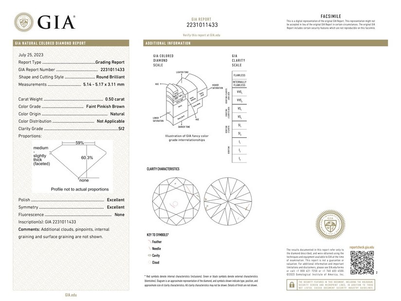 Product: Diamant - 0.50 carat natuurlijke roze gekleurde diamant (GIA gecertificeerd) Specificaties: Diamant: Natuurlijk Aantal: 1 stuk Slijpvorm: Briljant geslepen Gewicht (carat): 0.50 carat Kleur: Natural faint pinkish brown Zuiverheid: SI2 Certificaat: GIA Certificaat nummer: 2231011433 Extra informatie: Fancy colour diamanten zijn diamanten met een bijzondere kleur en zijn zeer zeldzaam. Hierdoor zijn ze zeer gewild en daardoor in hoge mate geschikt voor beleggingsdoeleinde. Zie GIA-certificaat voor kleur gradering. Conditie: Nieuw Verpakking: Edelsteendoos Toelichting: De kwaliteit is overgenomen van het rapport behorend bij item. De waardebepaling is een beoordeling van een gecertificeerde diamantair, gebaseerd op consumentenprijzen. Consumentenprijs: € 10.000,- *Ringen kunnen mogelijk op maat gemaakt worden.