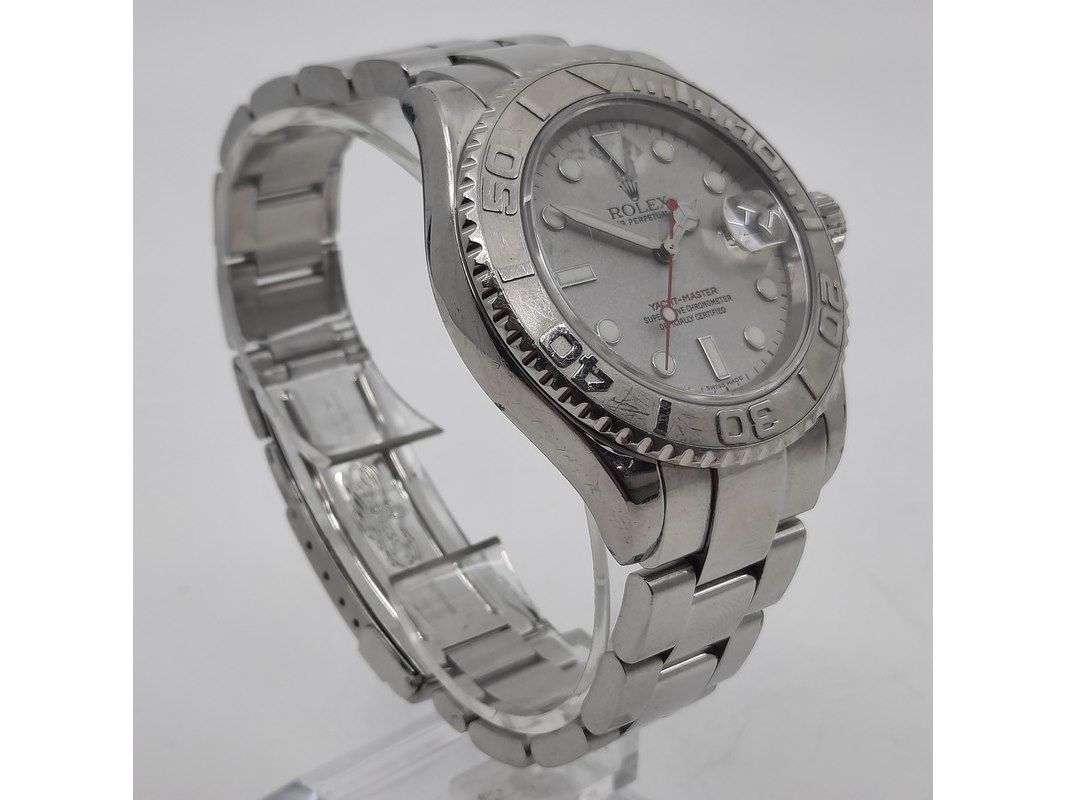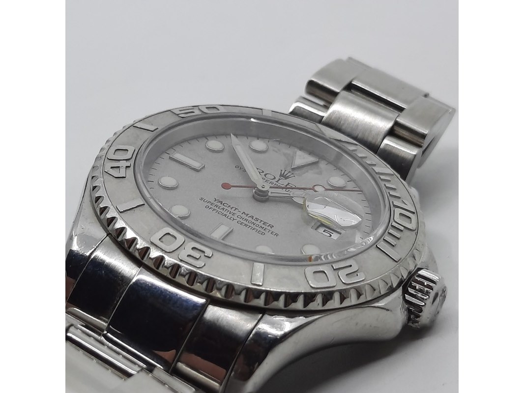 Merk: Rolex Product: Heren polshorloge Conditie: gebruikt Specificaties: Een stalen heren polshorloge, Rolex Yacht Master 16622. Bouwjaar ca. 2004. Met grijze wijzerplaat, Platina lunet en stalen band met vouwsluiting. Wijzerplaat beschadigd rond de 12 uur indicator, diverse gebruikssporen. Geen doos en geen certificaat.