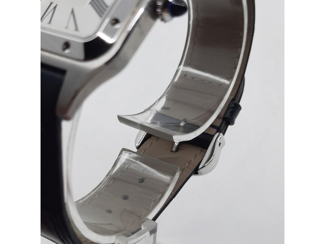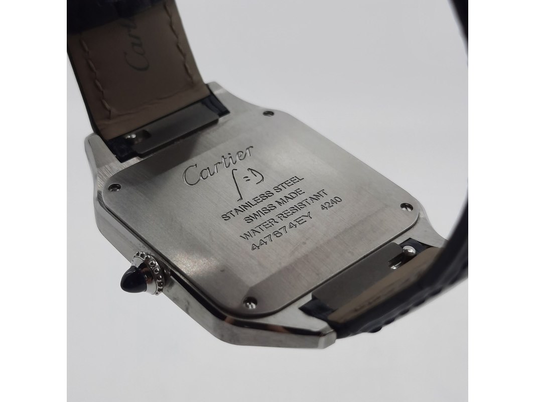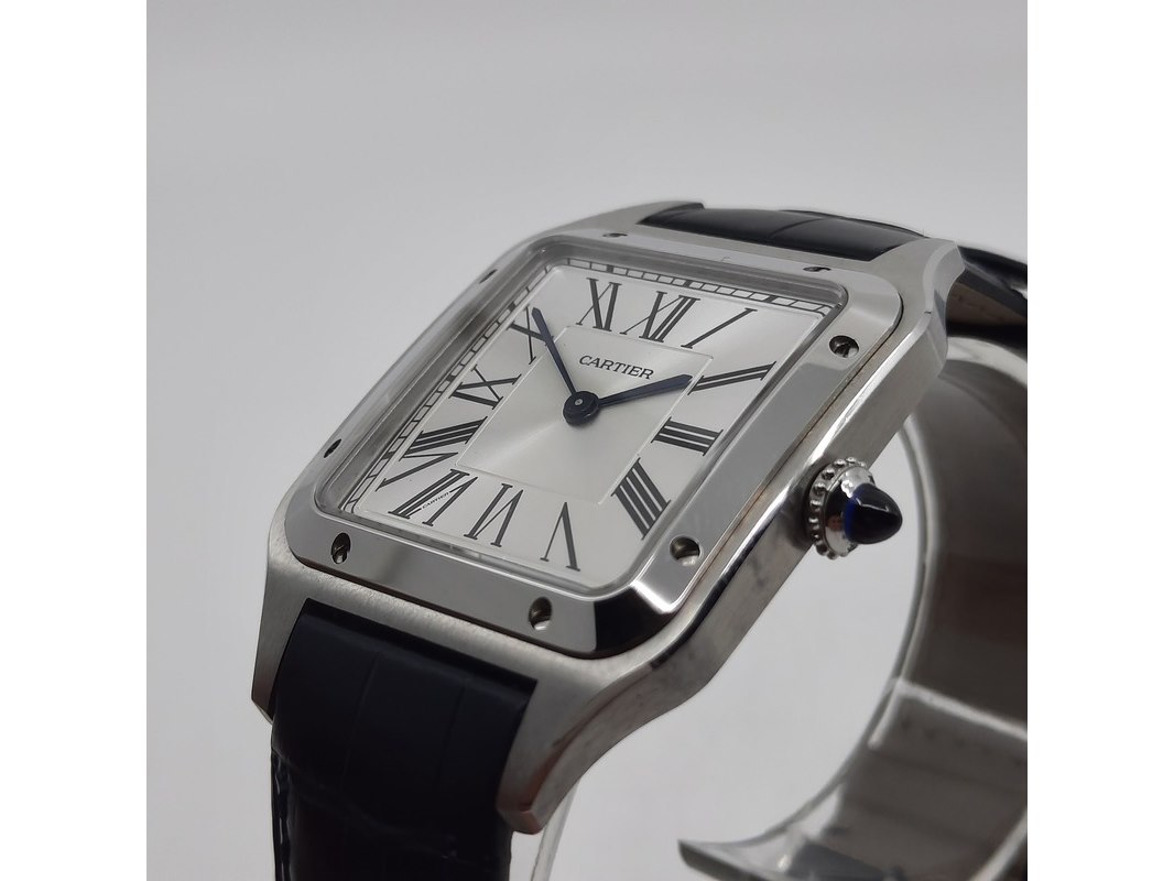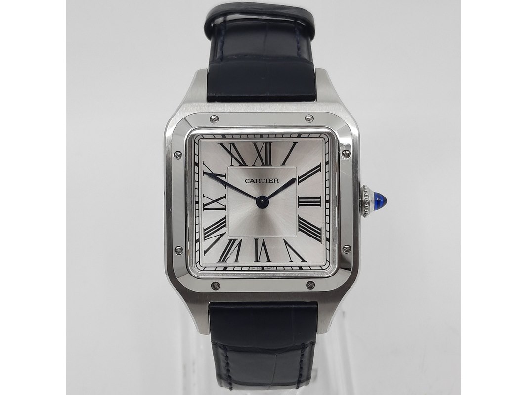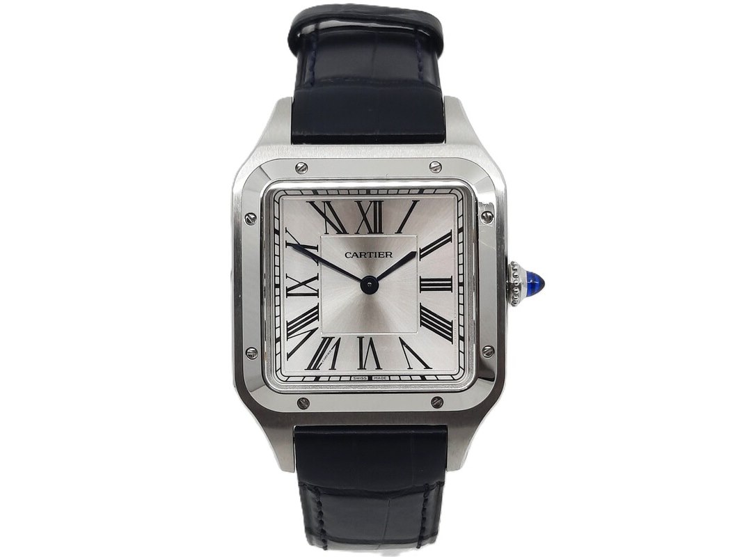 Merk: Cartier Product: Heren polshorloge Conditie: gebruikt Specificaties: Een stalen heren polshorloge, Cartier Santos Dumont 4240. Met grijze wijzerplaat en lederen band. Inclusief doos en garantie certificaat (2024).