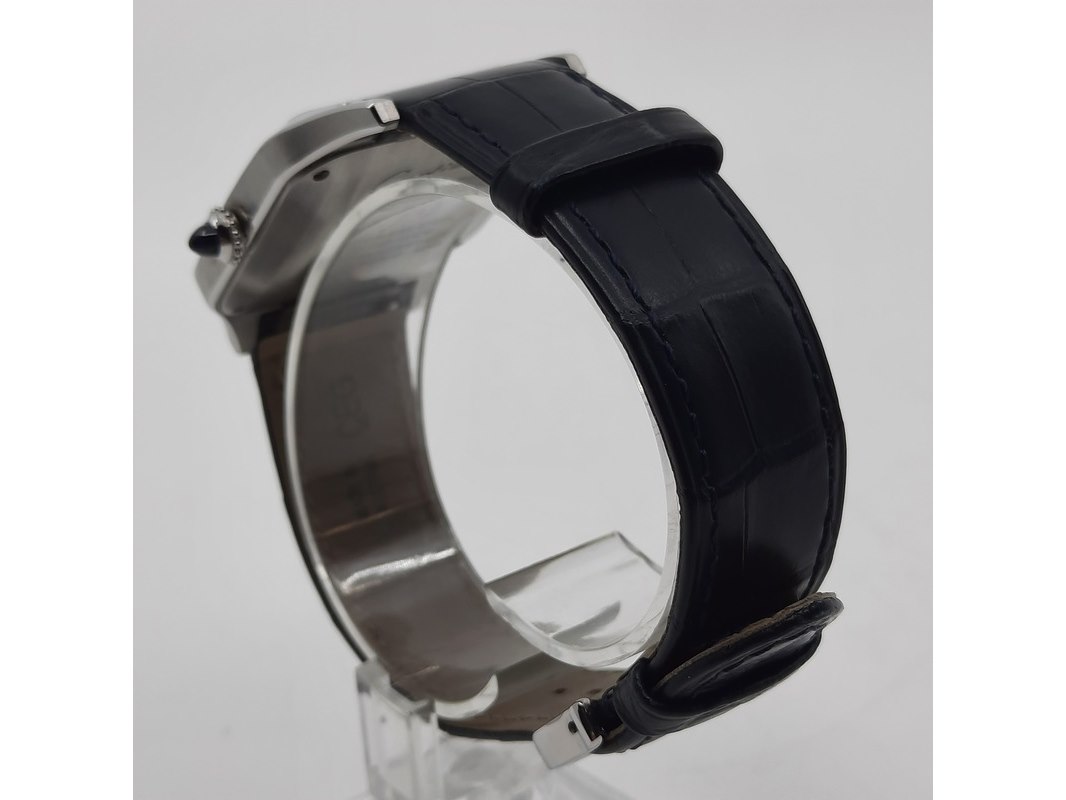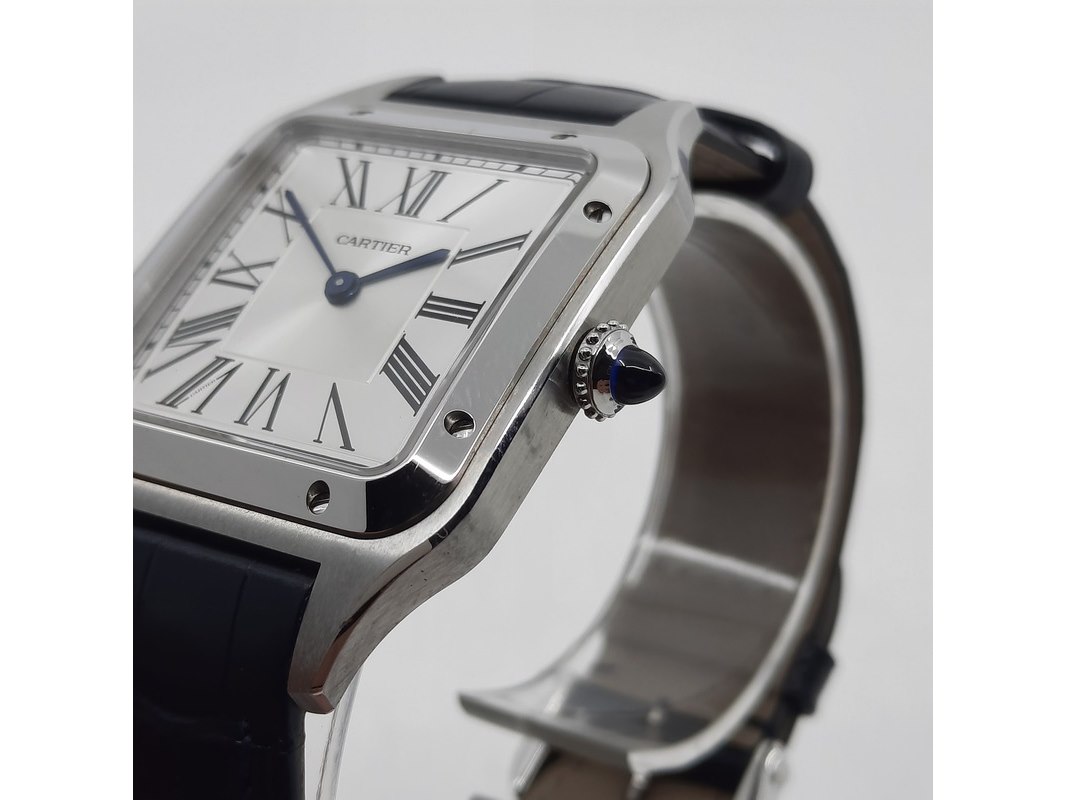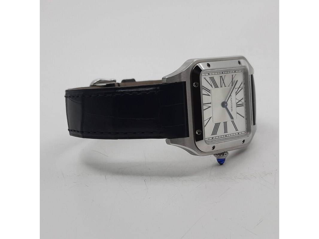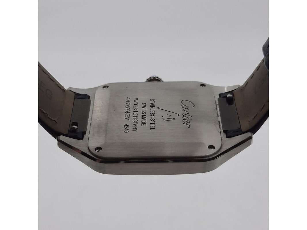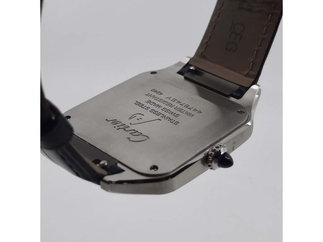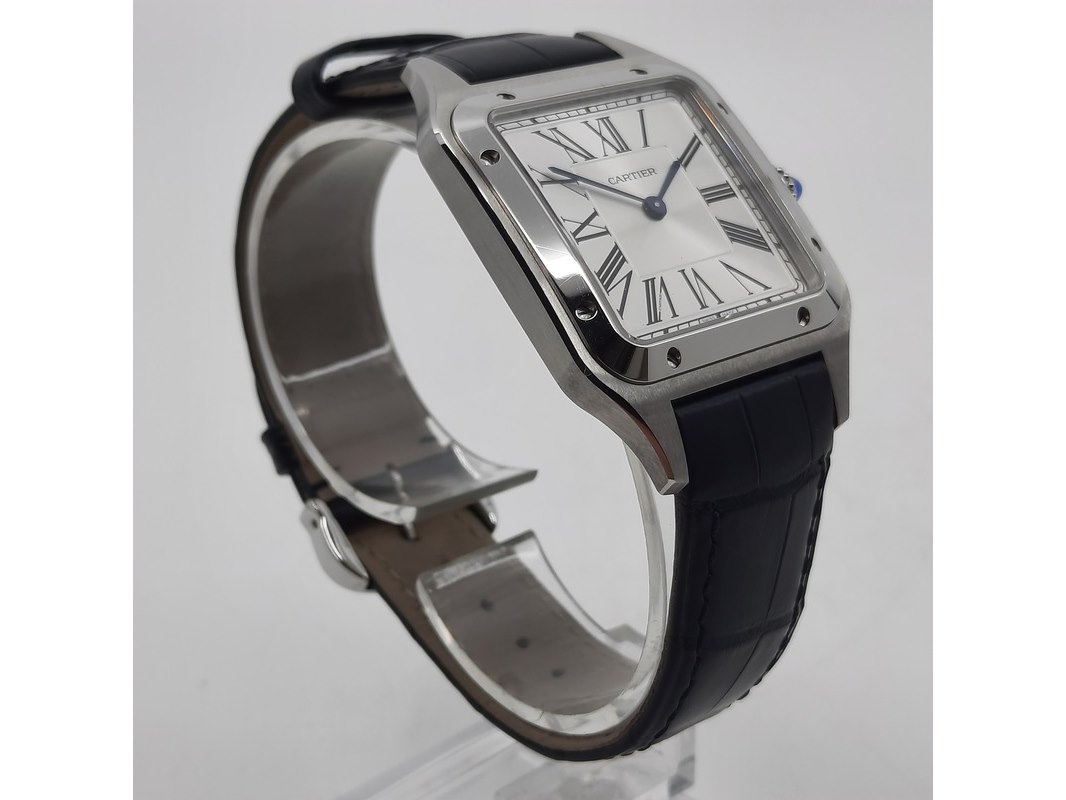 Merk: Cartier Product: Heren polshorloge Conditie: gebruikt Specificaties: Een stalen heren polshorloge, Cartier Santos Dumont 4240. Met grijze wijzerplaat en lederen band. Inclusief doos en garantie certificaat (2024).