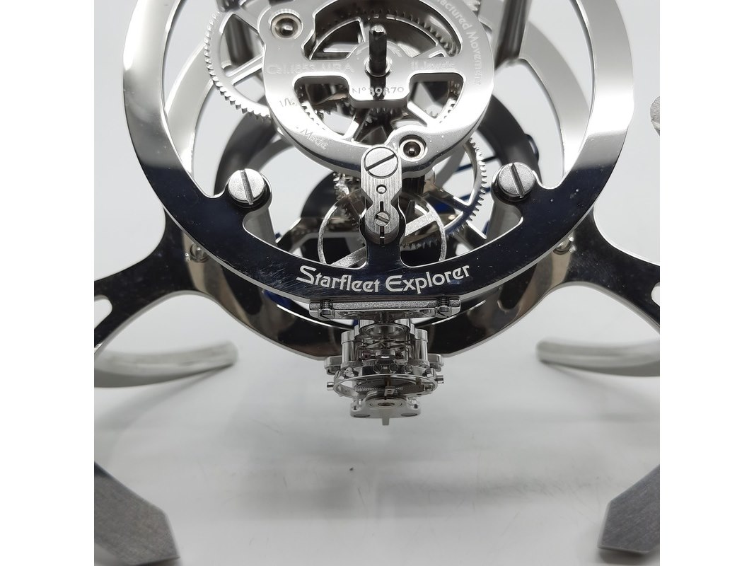 Merk: L'Epee Product: Tafelklok Conditie: gebruikt Specificaties: Een tafelklok Merk: MB&F / L'EPEE, Type: Starfleet Explorer In bijpassende doos met certificaat en boekje.