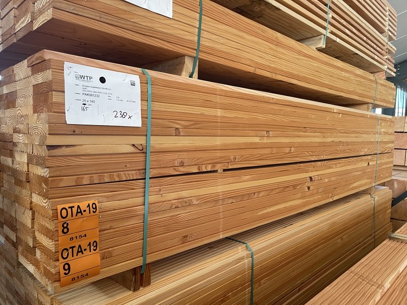 Product: Douglas vlonderplanken Materiaal: Douglas Afmeting: 25x140mm, lengte 300cm Conditie: nieuw
