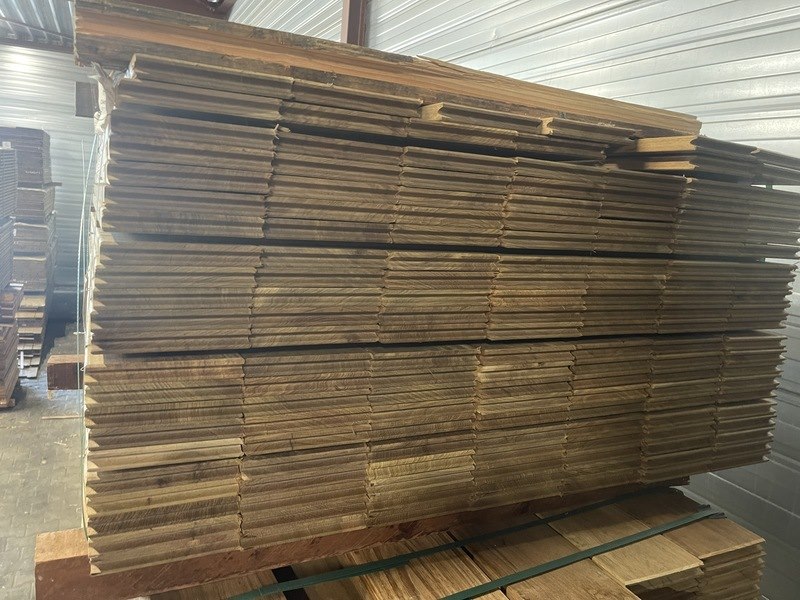 Ca. 152x guyana ipé kopse veer en groef (buitenparket), 21x145mm, lengte 95cm