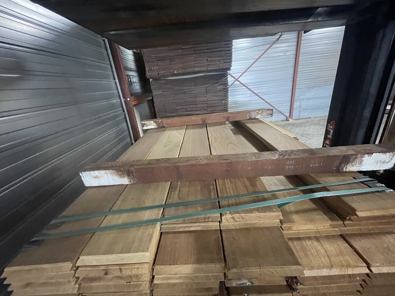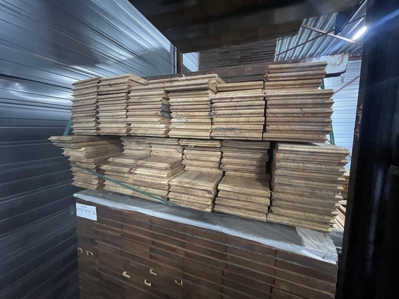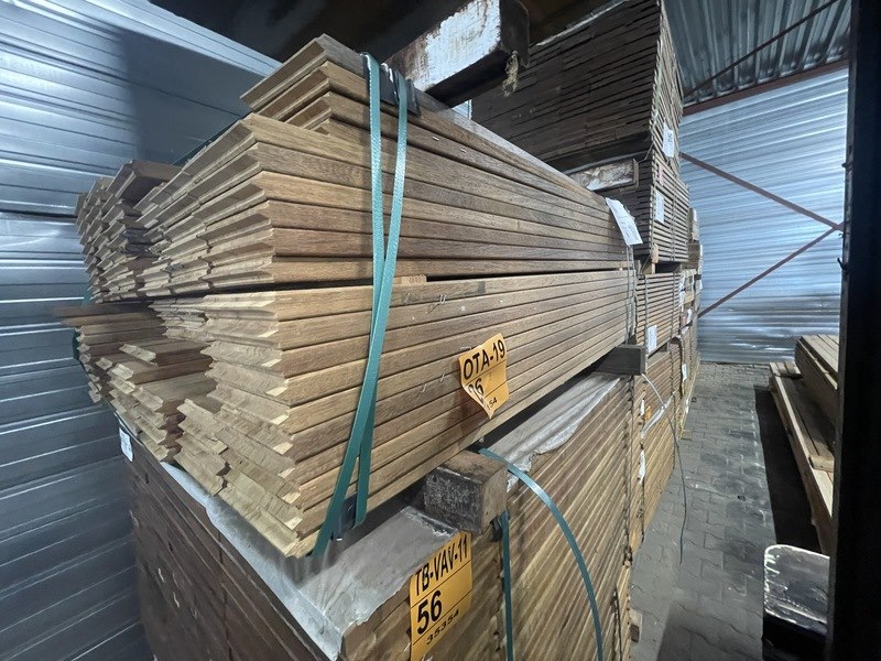 Product: Guyana Teak kopse veer en groef (buitenparket) Materiaal: Basralocus Afmeting: 21x145mm, lengte 125cm Conditie: nieuw