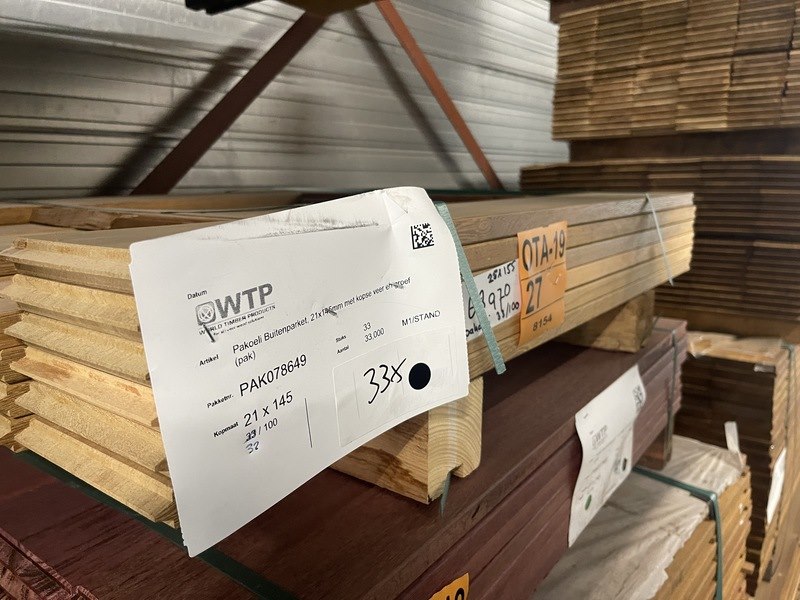 Ca. 32x pakoeli kopse veer en groef (buitenparket), 21x145mm, lengte 100cm