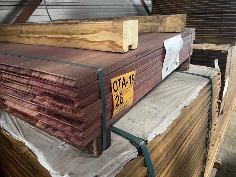 Ca. 42x purple heart kopse veer en groef (buitenparket), 21x145mm, lengte 95cm