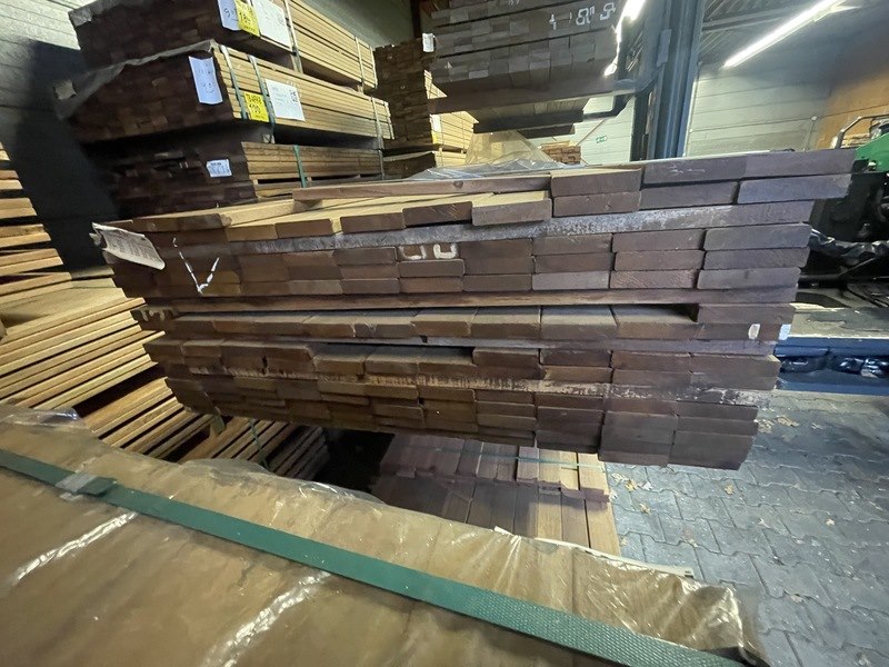 Ca. 137x guyana teak planken geschaafd, 21x90mm, lengte 15/455cm, 35/485cm, 13/515cm, 17/545cm, 57/575cm