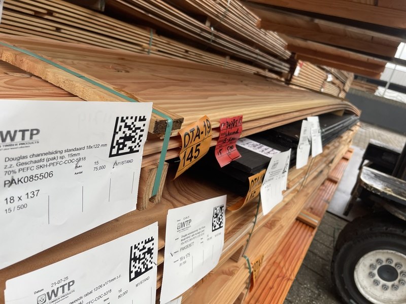 Ca. 15x douglas channelsiding, 18x145mm, lengte 500cm