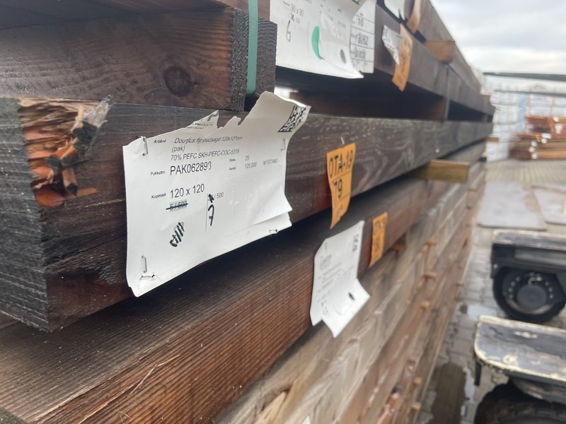 Ca. 7x douglas balken fijnbezaagd , 120x120mm, lengte 500cm