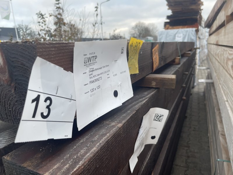 Ca. 5x douglas balken fijnbezaagd, 120x120mm, lengte 500cm