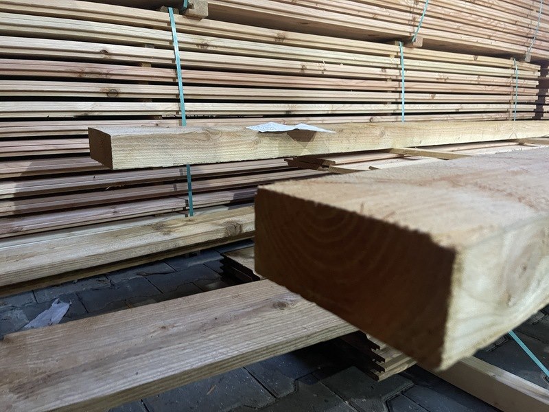 Ca. 2x douglas balken fijnbezaagd, 75x175mm, lengte 500cm