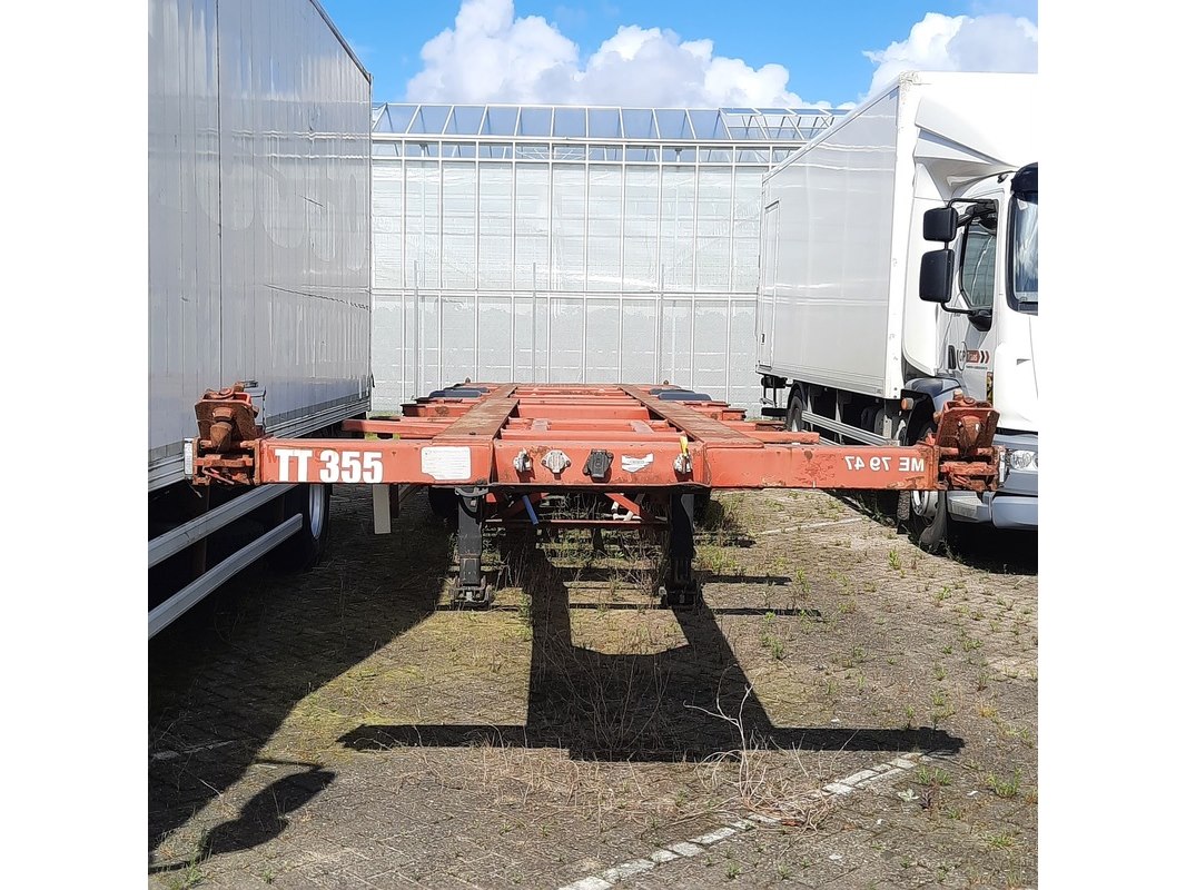 Merk: HFR Product: Container chassis Afmeting: Lengte ca. 11,5 x 2,43 m Conditie: gebruikt Specificaties: Verdere technische staat en compleetheid onbekend. Typeplaat ontbreekt. Kenteken: Niet geregistreerd Goedkeuring op basis van buitenlandse goedkeuring binnen de EU.