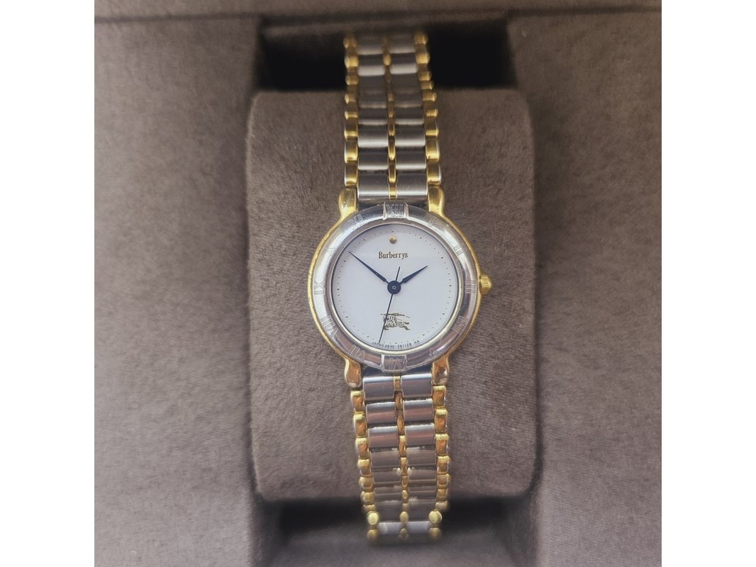 Product: Burberry two tone dameshorloge - Full Set Afmeting: 26mm Conditie: Gebruikt Specificaties: Goed werkend horloge van Burberry. Two tone dameshorloge In volledig originele en goede staat. Inclusief doos, omdoos en papieren… full set.