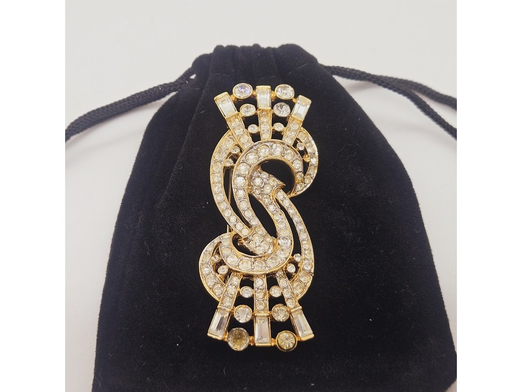 Product: Nina Ricci Paris - Goldplated broche Afmeting: 60mm x 25mm Specificaties: Uit oude voorraad. Goldplated.