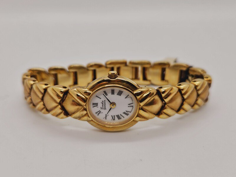 Product: Emka Geneve Damsh goldplated dameshorloge Afmeting: 20mm Conditie: Nieuw Specificaties: Nieuw uit oude juweliersvoorraad. In goede werkende staat.