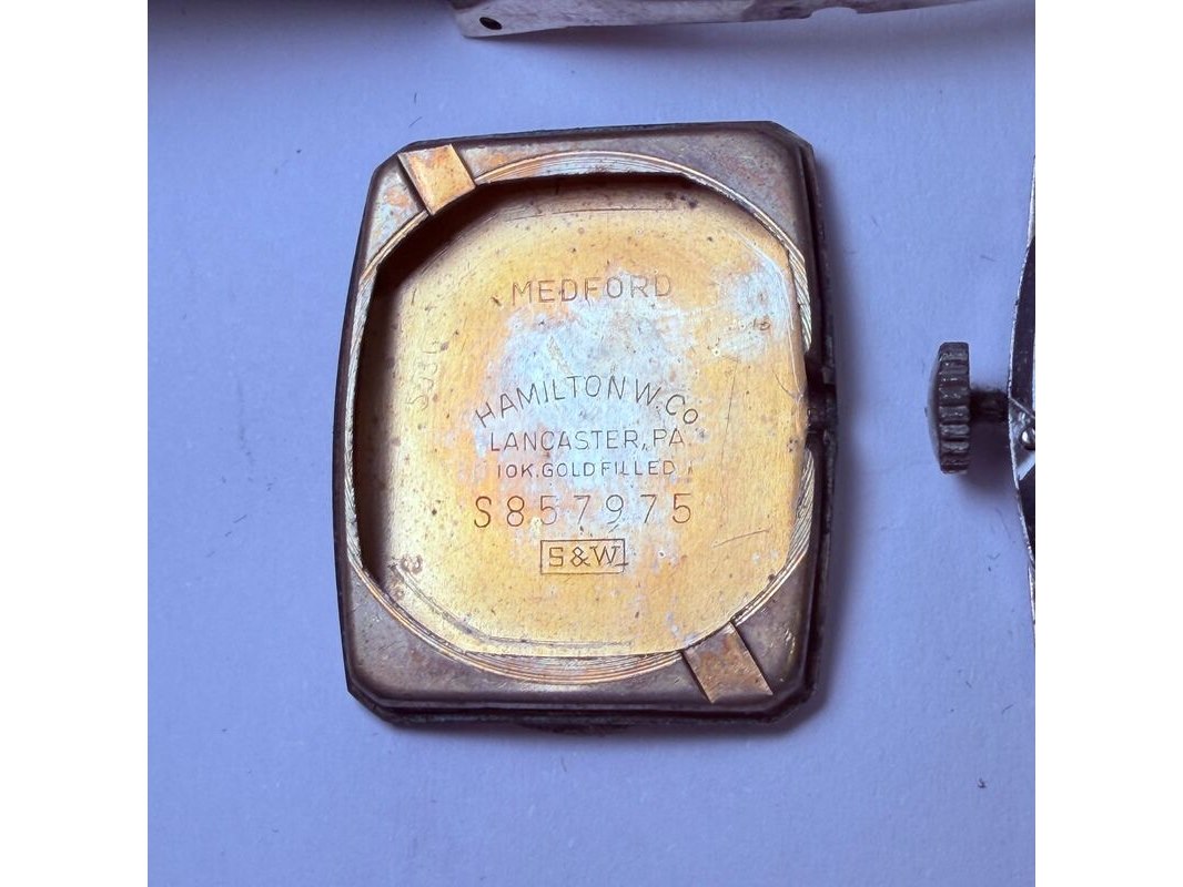 Product: Hamilton 10kt goldfilled heren tank horloge Afmeting: 24mm Conditie: Gebruikt Specificaties: Heeft service nodig, start stop, vermoedelijk gedroogd olie Met 10kt goldfilled goudmarkering op achterklep en aan binnenkant kast. Inclusief juweliers etui.