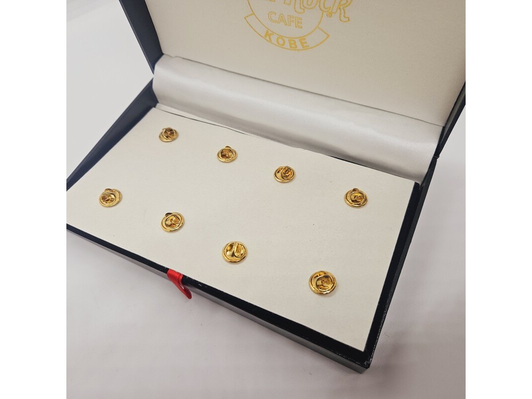 Product: Hard Rock Café Kobe broche set - Christmas special Conditie: Nieuw Specificaties: 4 broches in doos van Hard Rock Café Kobe. In kerststijl uitgevoerd. incl. etui