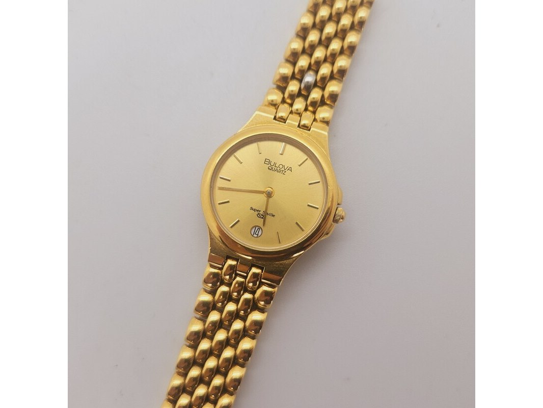 Product: Bulova Super Seville dameshorloge Afmeting: 26mm Conditie: Gebruikt Specificaties: Goed werkend dameshorloge van Bulova. Model: Super Seville.