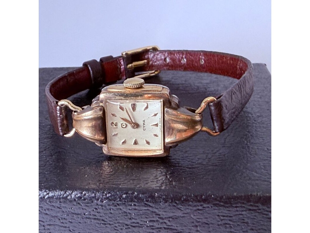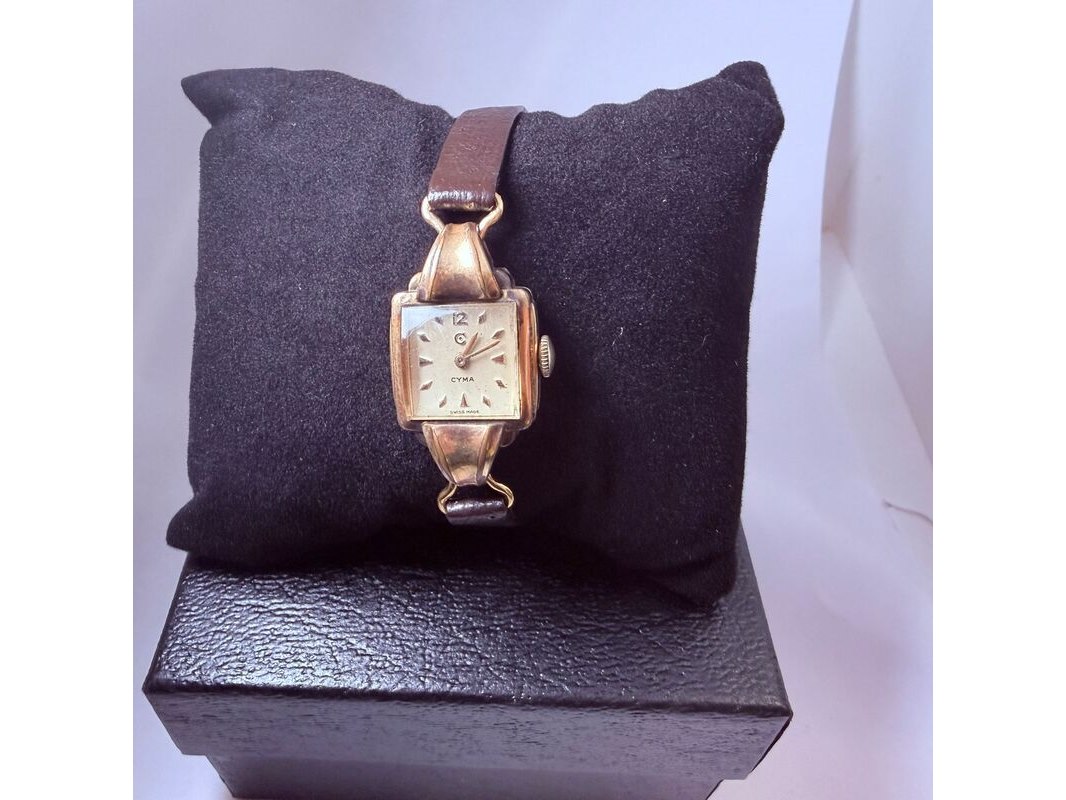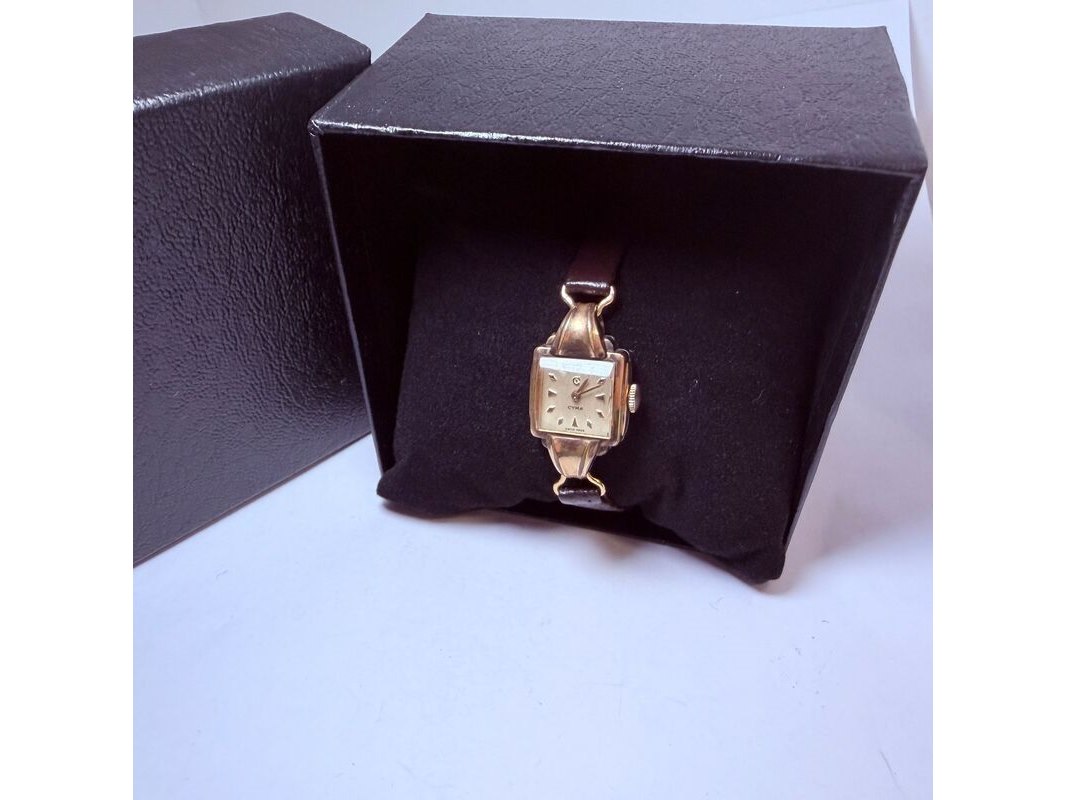 Product: Cyma mechanisch dameshorloge met goudkeurmerk (20 micron) Afmeting: 18mm Conditie: Gebruikt Specificaties: Mechanisch uurwerk loopt. Swiss made met American Ostrich leren band. Band heeft sporen / kraakjes in leder. Inclusief juweliers doosje.