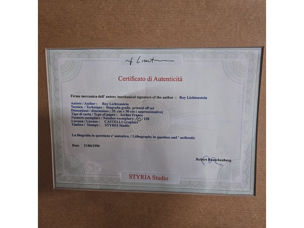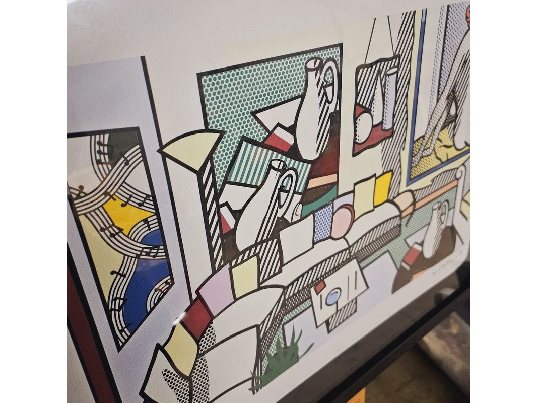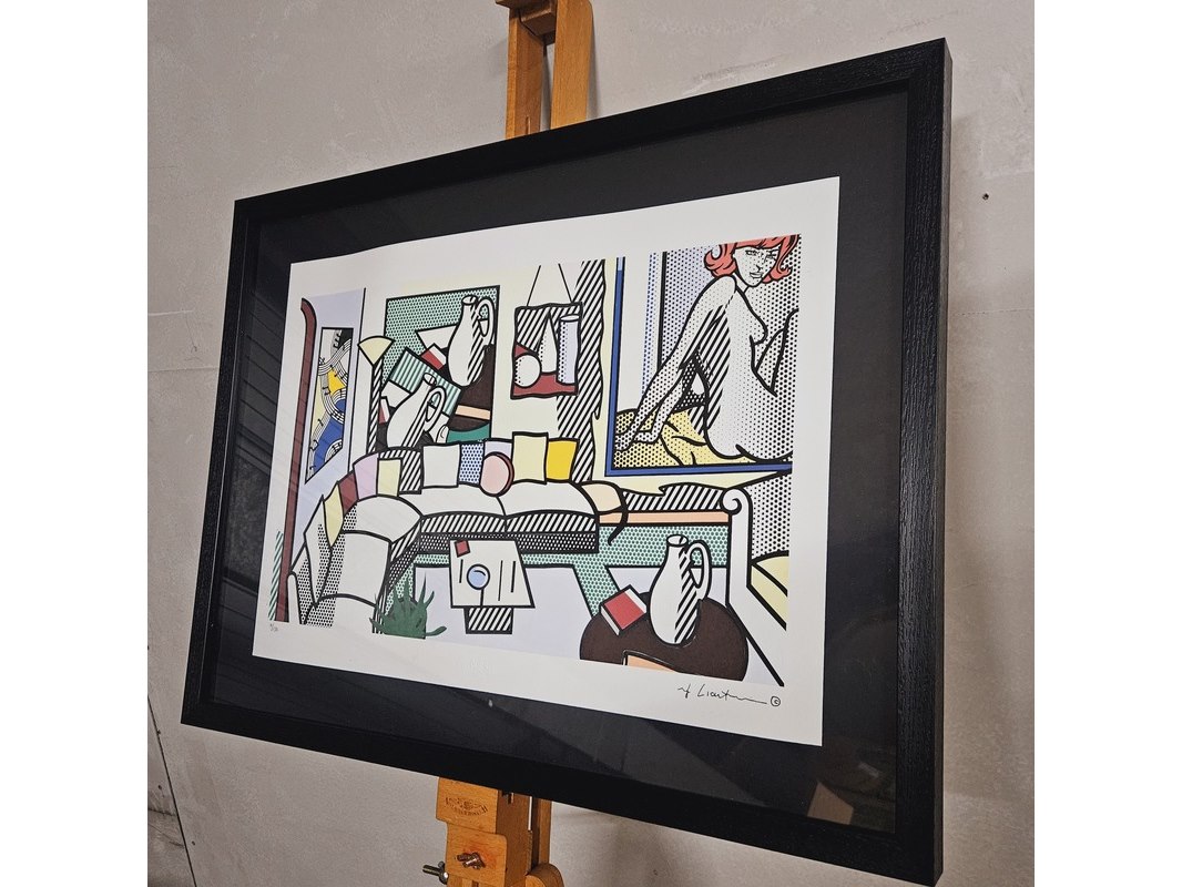 Product: Roy Lichtenstein - ''Interior'' - Lithograaf Afmeting: 63cm x 48cm Conditie: Nieuw Specificaties: Limited edition 10/150 Uitgever Styria Studio, wordt nieuw ingelijst geleverd met een zwart houten frame.