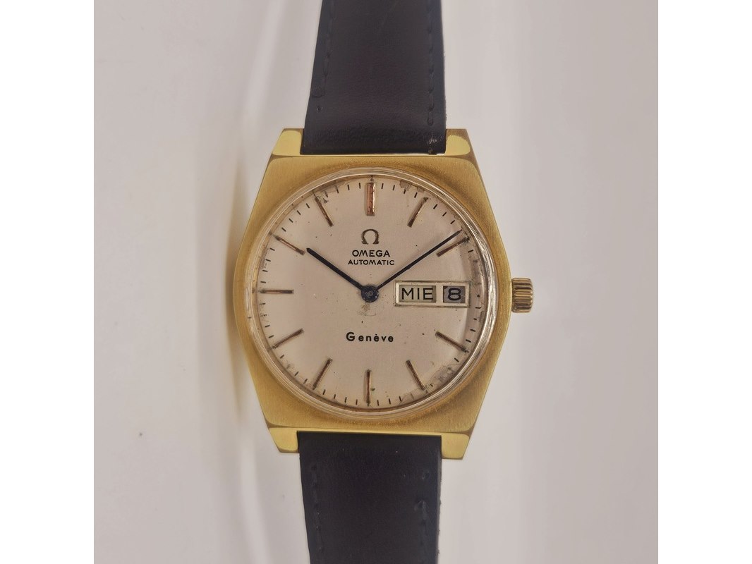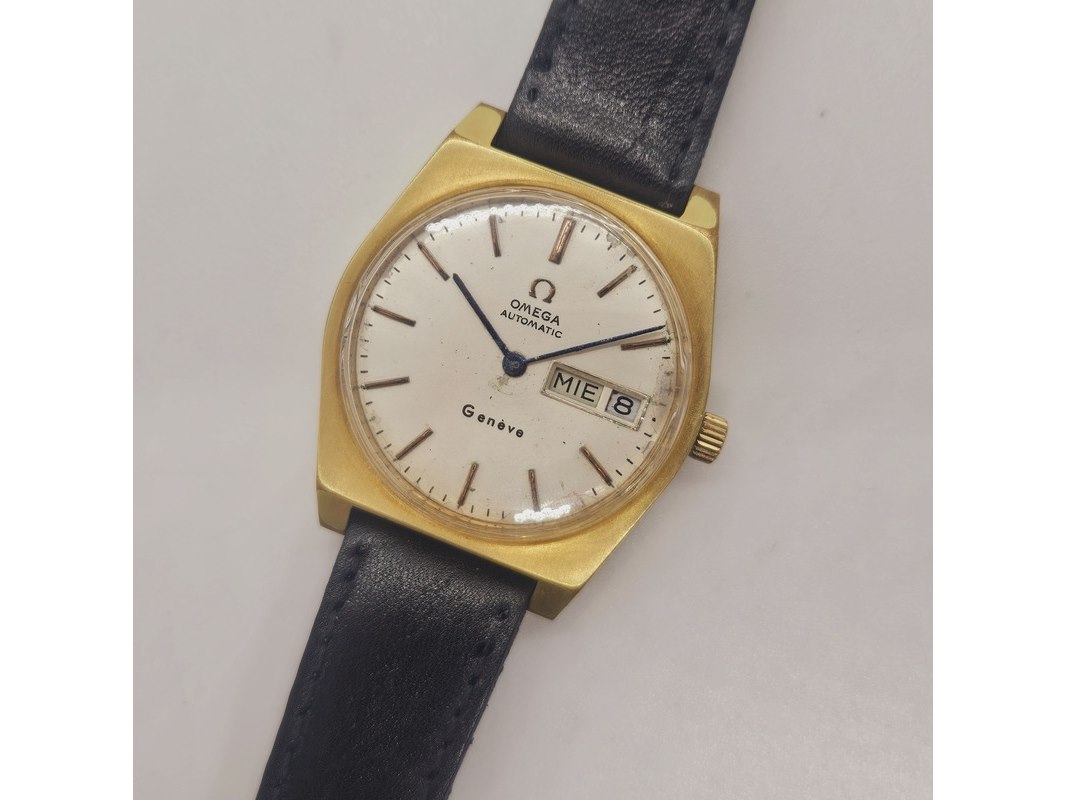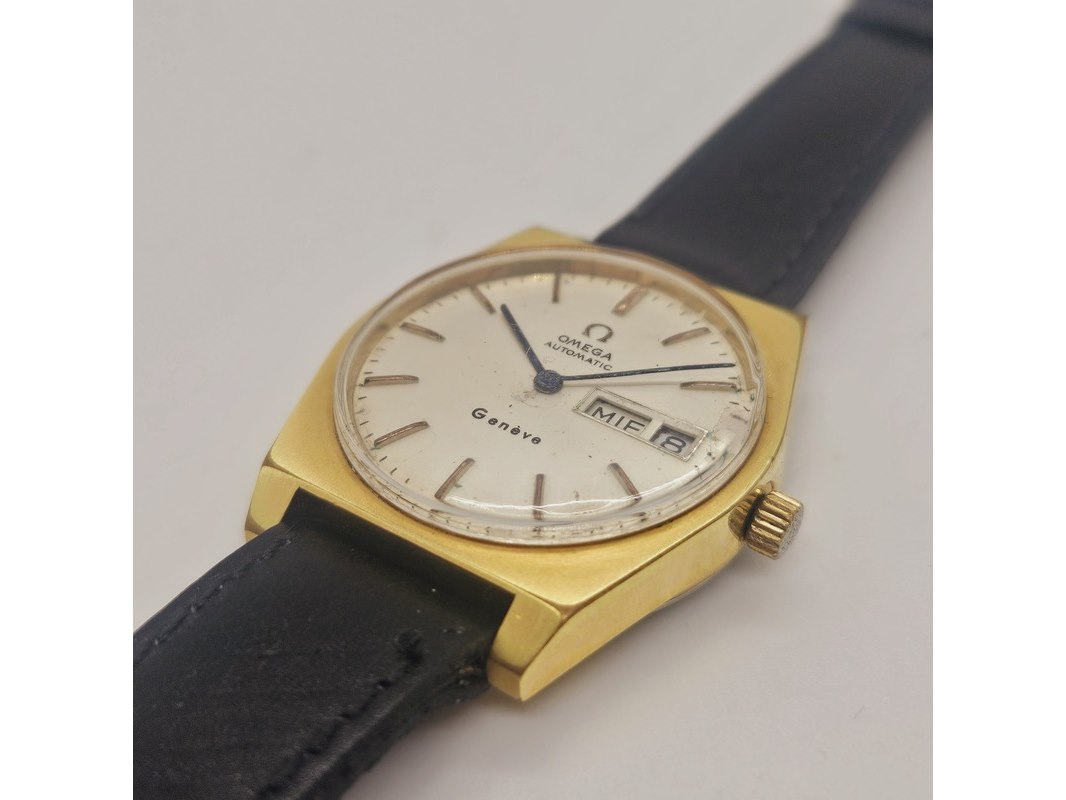 Product: Omega Geneve goldplated automatisch herenhorloge Afmeting: 35mm Conditie: Gebruikt Specificaties: Merk: Omega. Goldplated, automatisch uurwerk. Horloge loopt, maar heeft service nodig. Onderhoudshistorie onbekend.