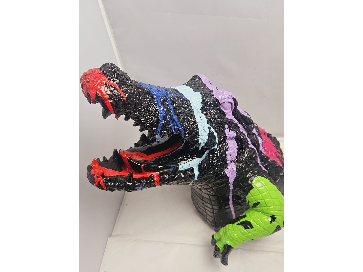 Product: Paintcan splash pop art crocodile Afmeting: 45cm x 40cm x 30cm Conditie: Gebruikt Specificaties: Paintcan splash pop art crocodile