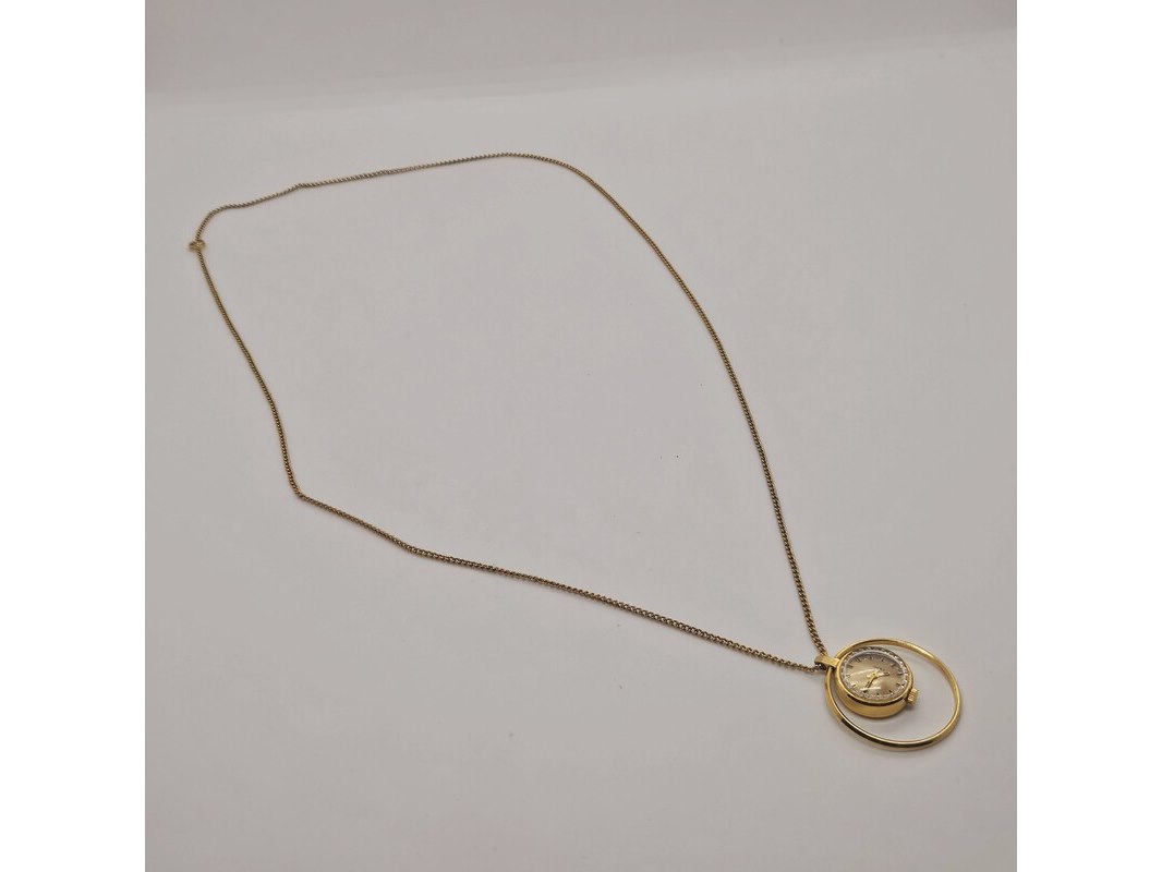 Product: Russisch goldplated mechanisch pendant horloge Afmeting: 32mm Conditie: Gebruikt Specificaties: Russisch pendant horloge. Goldplated. Mechische uurwerk loopt goed.
