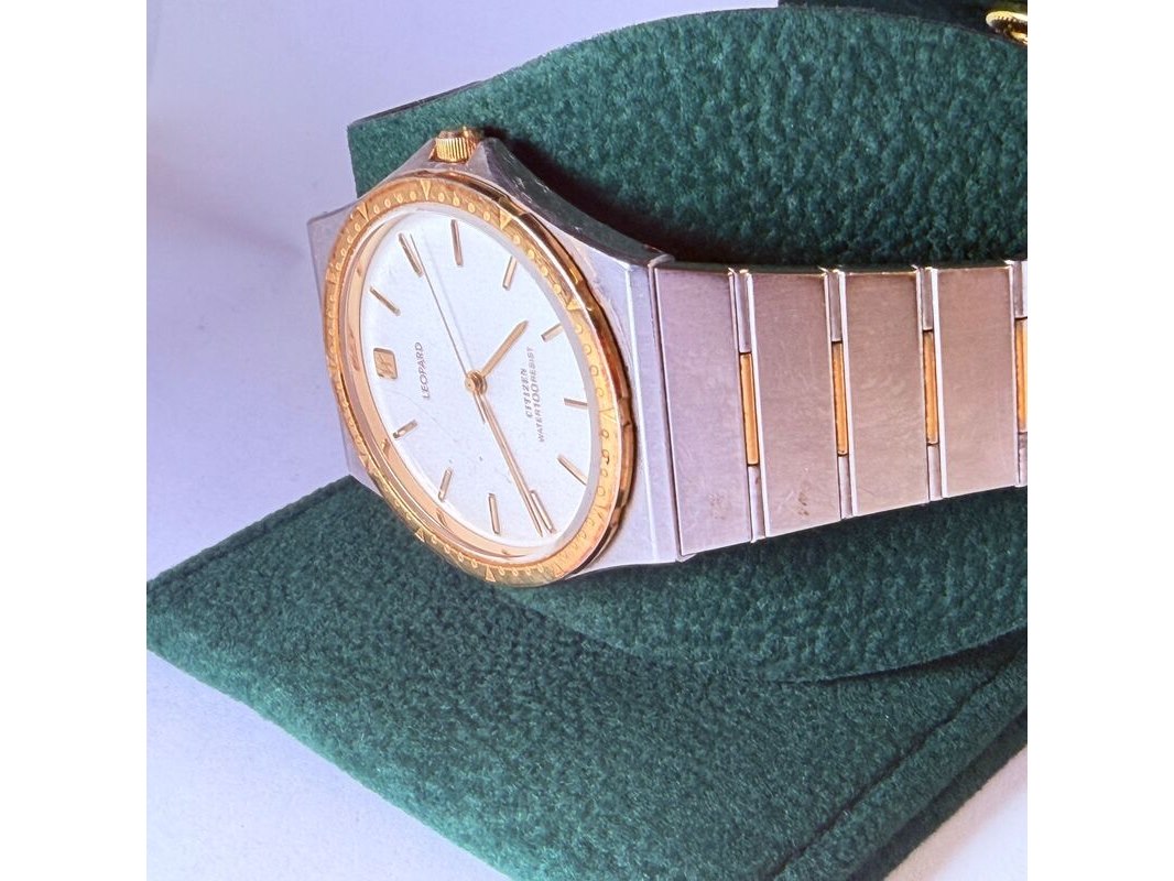 Product: Citizen ''Leopard'' horloge collector's item met originele band Afmeting: 34mm Conditie: Gebruikt Specificaties: Werkend getest op quartz-tester, heeft een nieuw batterijtje nodig Band formaat: 16,5cm-17cm. Uit particuliere inboedel. Inclusief juweliers hoes.
